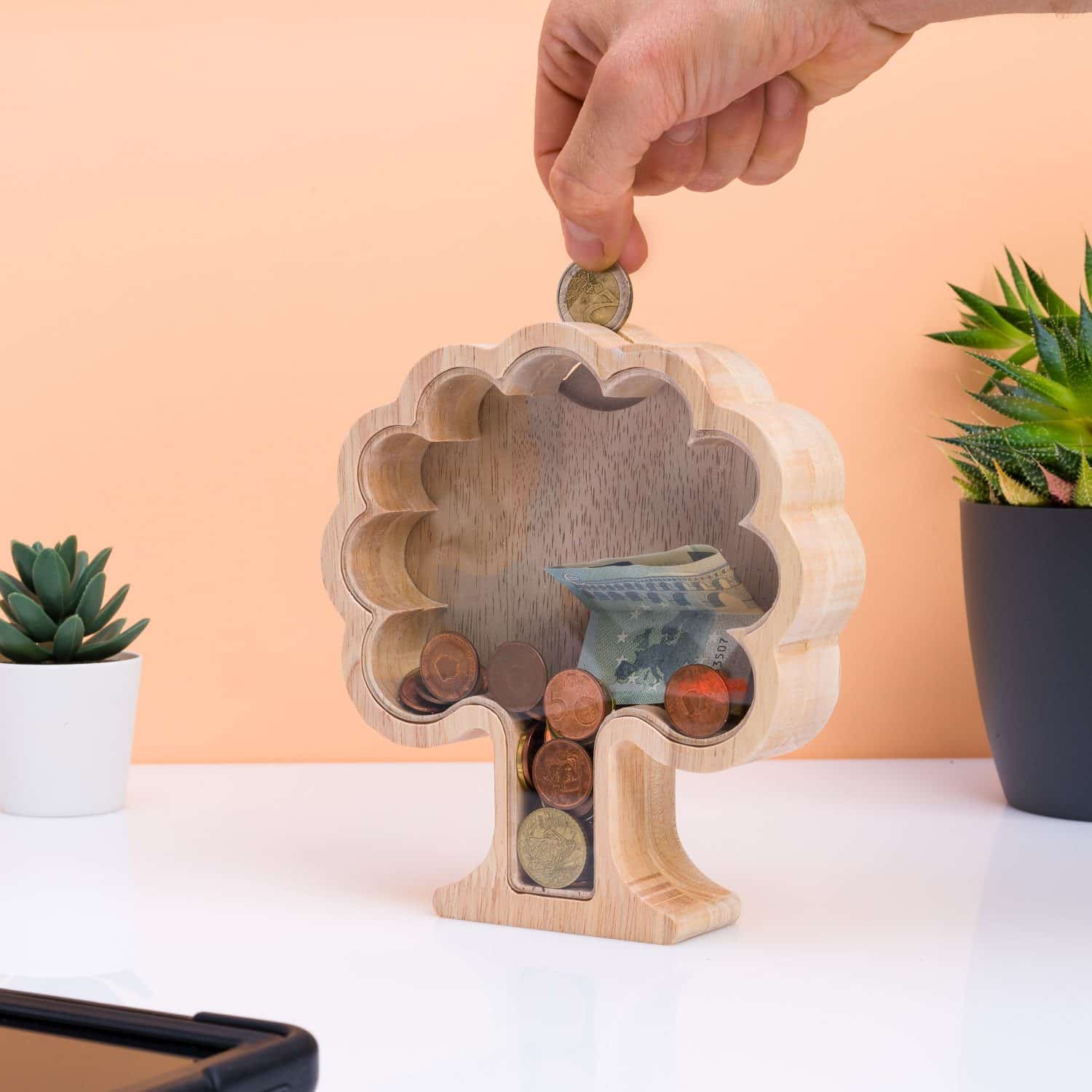 Sie haben jahrelang nach einem Geldbaum gesucht und jetzt haben Sie ihn gefunden: das Sparschwein Money Tree von Kikkerland. Dieses originelle Sparschwein hat die Form eines Baumes. So bestimmen Sie, wie viel Ihr Geldbaum erbringt. Wenn man viel spart, ist der Ertrag natürlich größer. Durch die transparente Vorderseite können Sie genau sehen, wie viel sich bereits im Sparschwein befindet. Sie können darin sowohl Scheine als auch Münzen aufbewahren. Und wenn Sie Ihr Ziel erreicht haben, können Sie es ganz einfach öffnen, um Ihr Geld abzuheben.