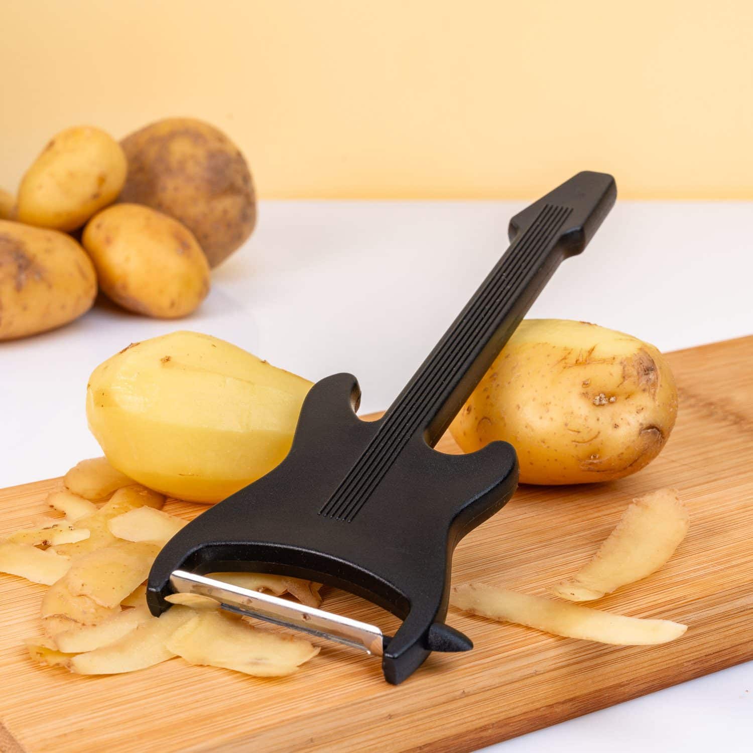 Gemüse zuzubereiten fühlt sich vielleicht nicht besonders cool an, aber mit dem Gitarren-Schäler von Winkee bekommt es eine ganz andere Dimension. Dieser coole Schäler sieht nämlich aus wie eine elektrische Gitarre. Damit rockst du das Schälen von Kartoffeln wie kein anderer. Du kannst ihn natürlich auch verwenden, um deine Karotten zu putzen und dünne Scheiben Gurke zu schälen.