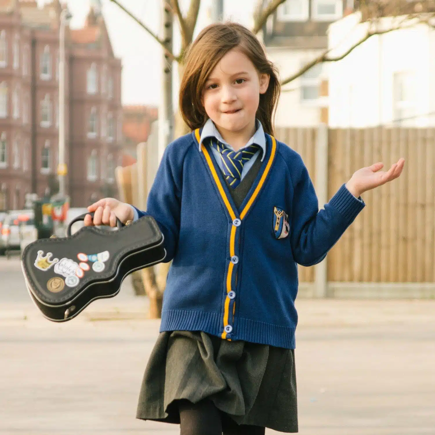 Die Gitarrenkoffer Lunchbox von Suck UK verwandelt deine Mittagspause in eine Rockparty. Die stilvoll gestaltete Lunchbox in Gitarrenform bietet Platz fรผr deine Brote, Obst und Snacks. Jeder wird sofort erkennen, wie musikalisch du bist. Mit den zehn zusรคtzlichen Aufklebern, die du dazu bekommst, kannst du die Lunchbox weiter personalisieren, sodass sie perfekt zu dir passt. Verziere sie mit Stickern deiner Lieblingsband oder klebe sie mit Fruchtaufklebern voll, um zu zeigen, dass du auf eine gesunde Ernรคhrung achtest. Dank des praktischen Griffs kannst du die Lunchbox bequem zur Schule oder zur Arbeit mitnehmen. Ab jetzt isst du deine Brote stilvoll!