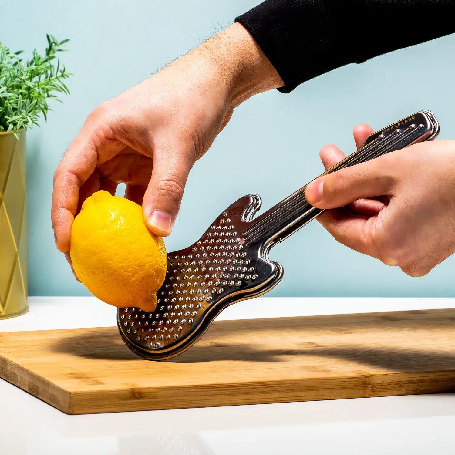 Wenn du um Parmesankäse für deine Pasta bittest und plötzlich jemand mit einer Gitarre neben dir steht, kann das etwas seltsam wirken. Zum Glück ist die Gitarrenreibe von Kikkerland ideal zum Reiben von Hartkäse geeignet. Diese witzige Reibe in Form einer Gitarre eignet sich besonders gut für das Feinreiben von Lebensmitteln. Denke zum Beispiel an Muskatnuss oder andere Gewürze oder zum Zesten von Zitrusschalen für deine Backwaren.
