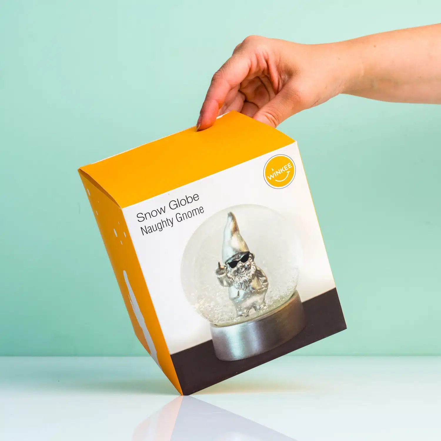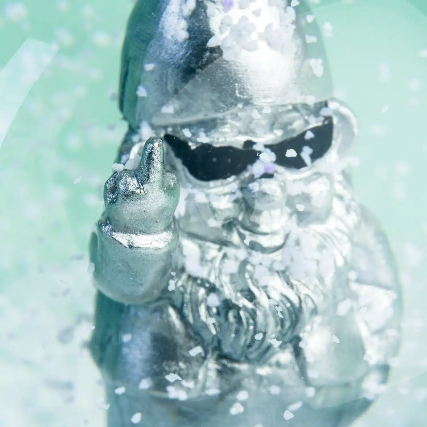 Auf der Suche nach einem frechen Geschenk für einen Freund? Die Gnom Schneekugel von Winkee ist ein witziges Wohnaccessoire. Diese Schneekugel hat kein romantisches Winterthema, obwohl sie mit Schnee gefüllt ist. Wenn die weißen Flocken gesunken sind, erscheint der Gnom. Mit seiner Sonnenbrille und dem ausgestreckten Mittelfinger ist er der Inbegriff von Coolness. Oder?
