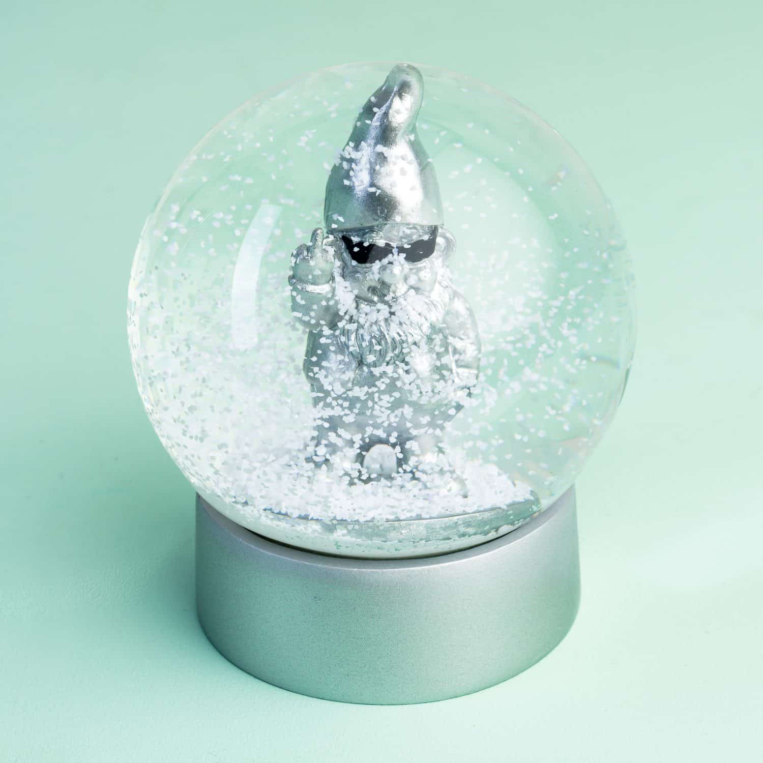 Auf der Suche nach einem frechen Geschenk für einen Freund? Die Gnom Schneekugel von Winkee ist ein witziges Wohnaccessoire. Diese Schneekugel hat kein romantisches Winterthema, obwohl sie mit Schnee gefüllt ist. Wenn die weißen Flocken gesunken sind, erscheint der Gnom. Mit seiner Sonnenbrille und dem ausgestreckten Mittelfinger ist er der Inbegriff von Coolness. Oder?