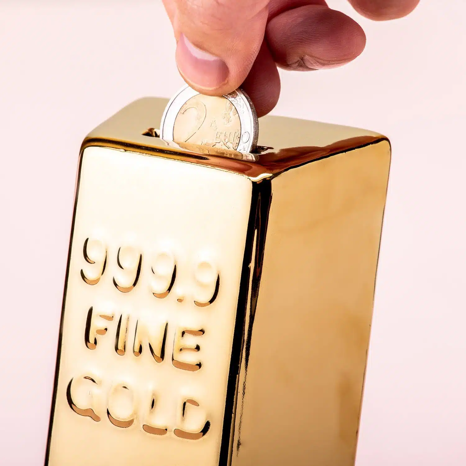 Goldenes Sparschwein fรผr Mรผnzen und Scheine