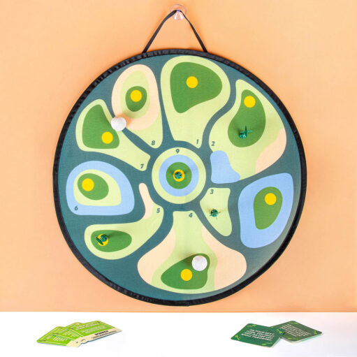 Keine Zeit fรผr den Golfplatz? Dann kommt er eben zu dir! Das Golf-Dartspiel von Gift Republic kombiniert die Prรคzision des Golfs mit der Spannung des Dartens und macht es herrlich sรผchtig. Wirf die Dartpfeile und Bรคllchen auf die Golfscheibe, meistere Herausforderungen und versuche so viele Punkte wie mรถglich zu sammeln. Mit 15 einzigartigen Aufgaben und witzigen Strafkarten auf der Rรผckseite ist jede Runde anders.