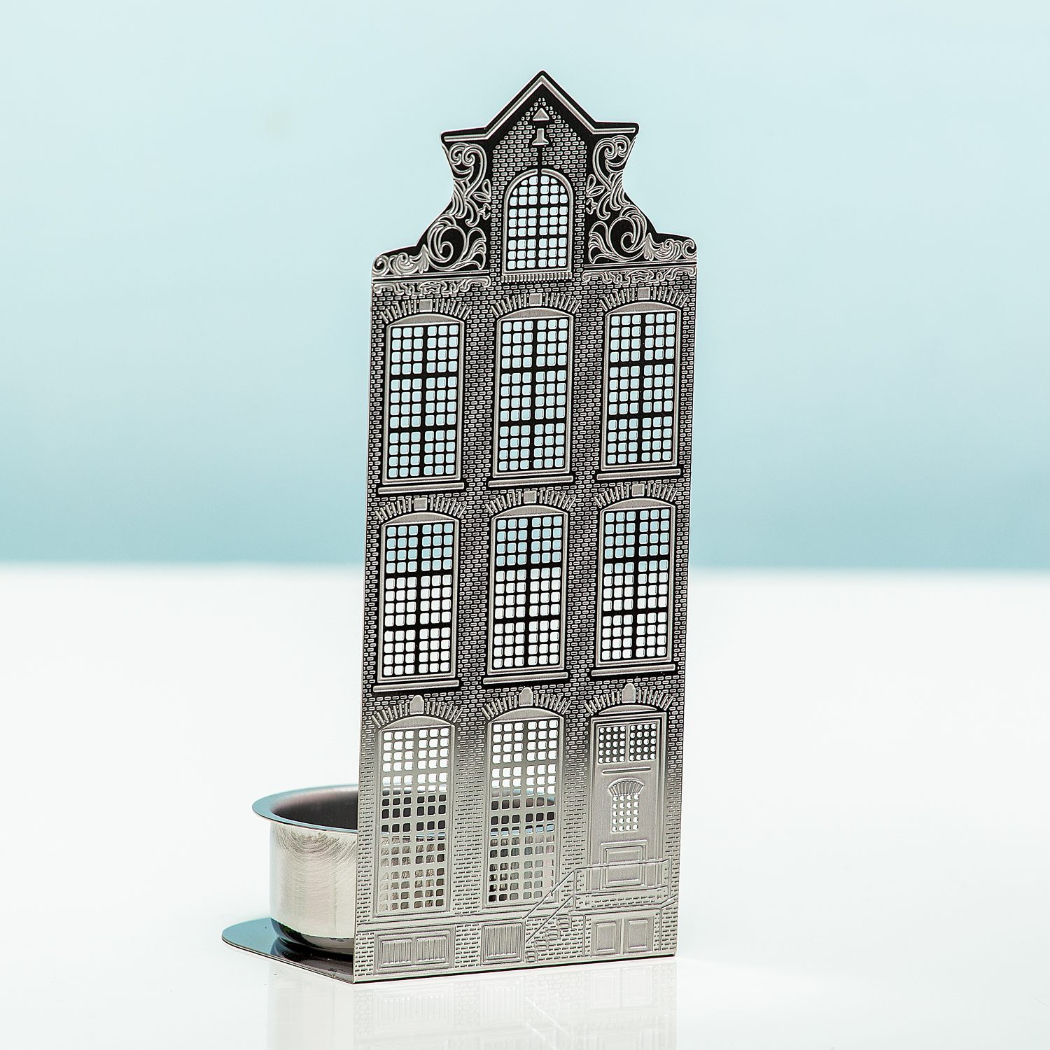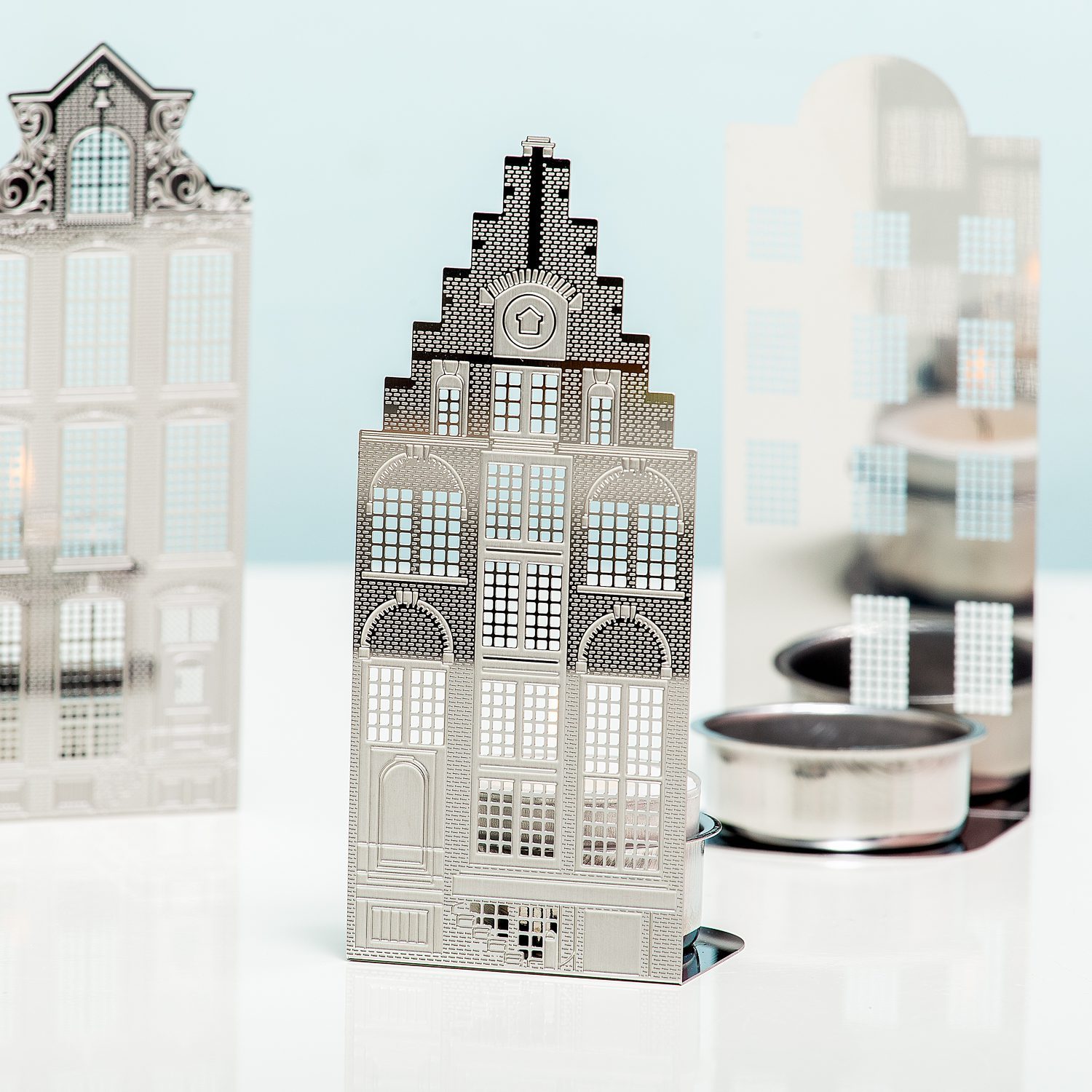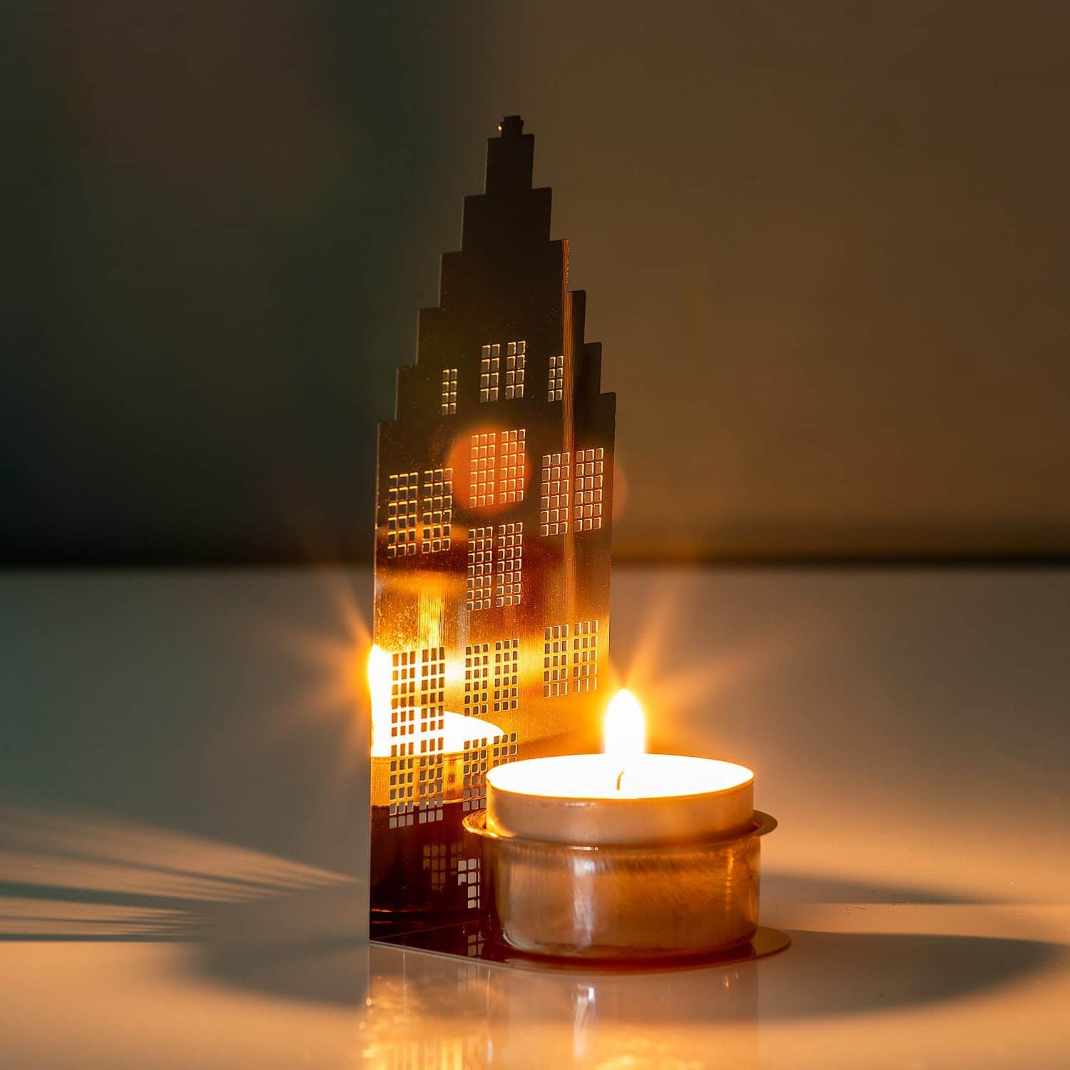 Bist du auf der Suche nach schönen Wohnaccessoires für zum Beispiel die Fensterbank oder ein Regal? Und darf es ruhig eine warme Atmosphäre ausstrahlen? Dieser Grachtenpand Teelichthalter von Invotis ist stimmungsvoll und stilvoll. Es ist ein Teelichthalter in der Form eines Amsterdamer Grachtenhauses mit einer echten alten Fassade und anderen Verzierungen. Diese Häuschen erinnern sofort an die schönen und besonderen Grachtenhäuser in Amsterdam. Der Grachtenpand Teelichthalter ist in verschiedenen Ausführungen erhältlich: Du kannst zwischen einem Grachtenhaus mit Treppengiebel, Halsgiebel oder Halbrundgiebel wählen.