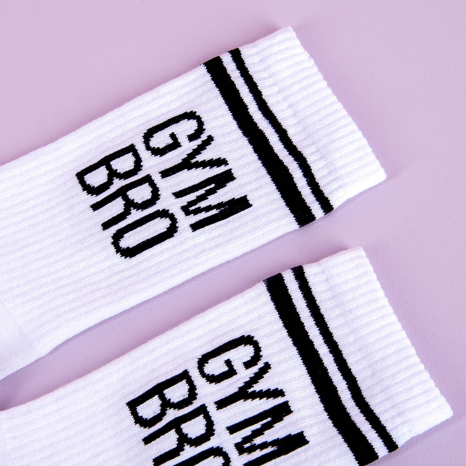 - Weiรe Socken mit dem Text: GYM BRO