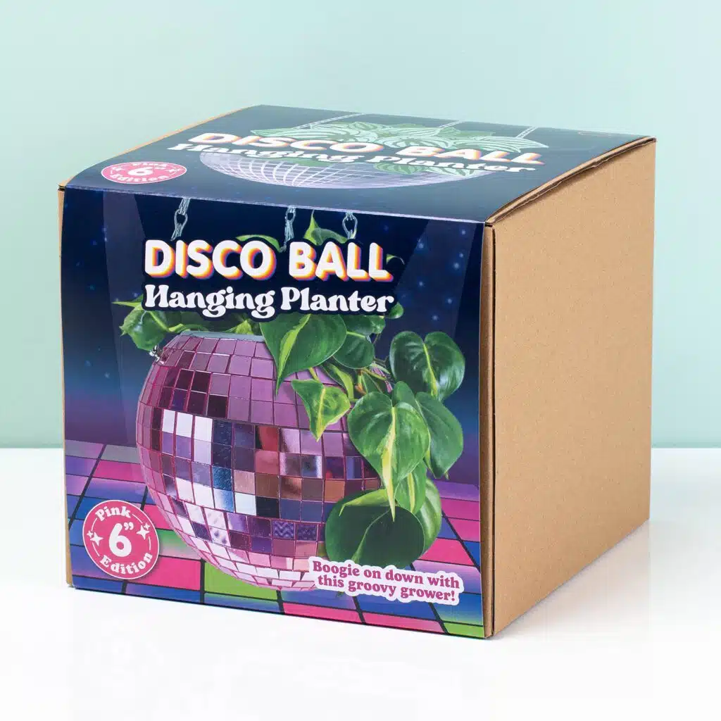 Verleihe deinem langweiligen Interieur einen funky Look mit dem hängenden Discokugel-Blumentopf von Bubblegum Stuff. Dieser glänzende Blumentopf ist natürlich von den Discokugeln der 80er Jahre inspiriert. Hänge den Blumentopf an einem auffälligen Platz an der Decke auf, wo er gut das Sonnenlicht einfängt. So kannst du jeden Tag einen Regenbogen in deinem Haus genießen. Oder stelle ihn mit Hilfe des mitgelieferten Holzrings auf ein Regal oder den Tisch.