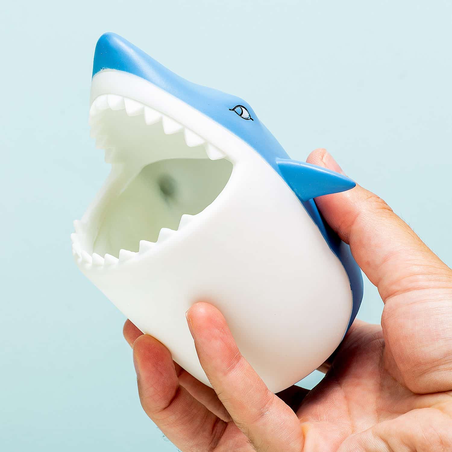 Ist es jeden Abend eine Herausforderung, dein Kind zum Zähneputzen zu bringen? Oder brauchst du einfach einen Platz für herumliegende Zahnpastatuben? Der Hai-Zahnbürstenhalter von Winkee ist ein lustiger Becher in Form eines Hais, um deine Zahnbürste aufzubewahren. Der Hai zeigt gerne seine blitzend weißen Zähne und bietet ausreichend Platz für mehrere Zahnbürsten und eine Tube Zahnpasta.
