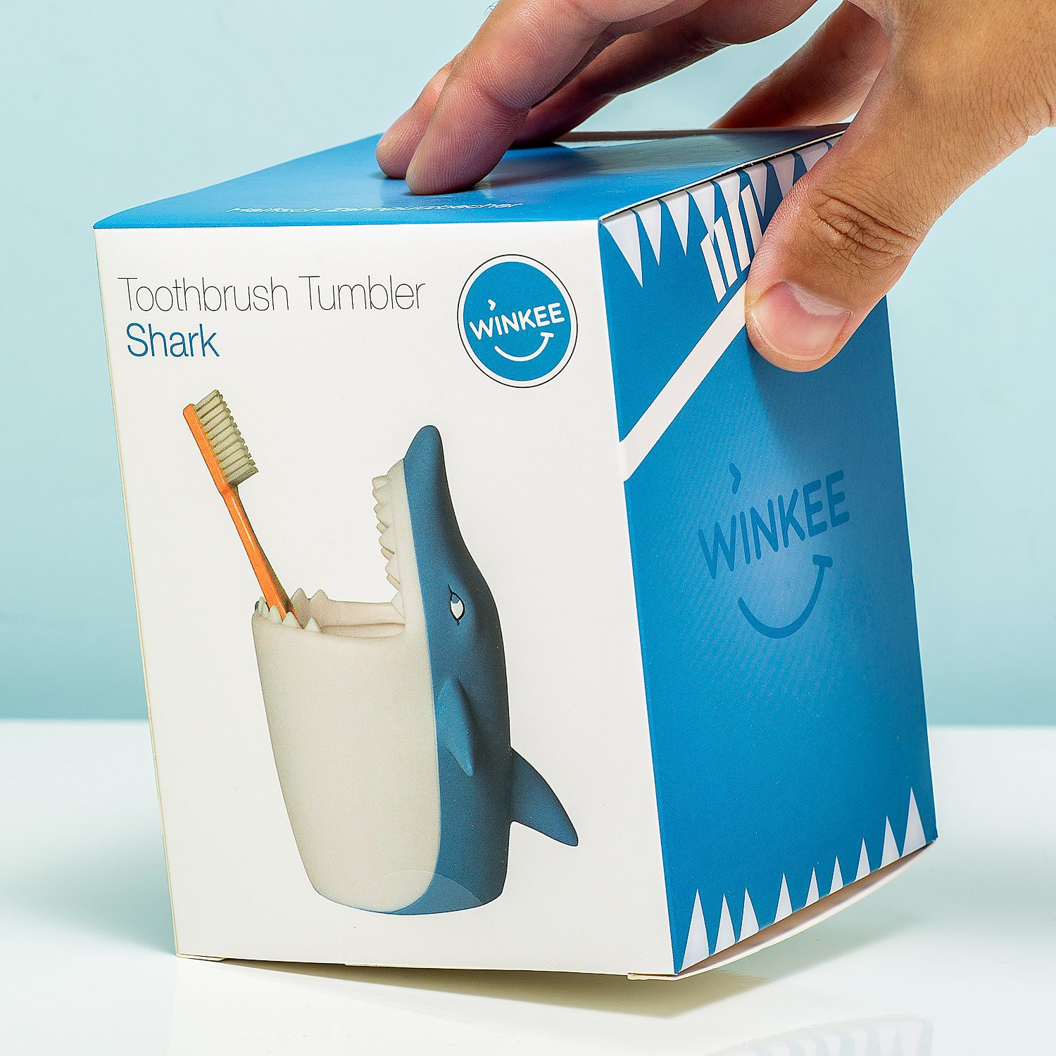 Zahnbürstenbecher in Form eines Hais von Winkee