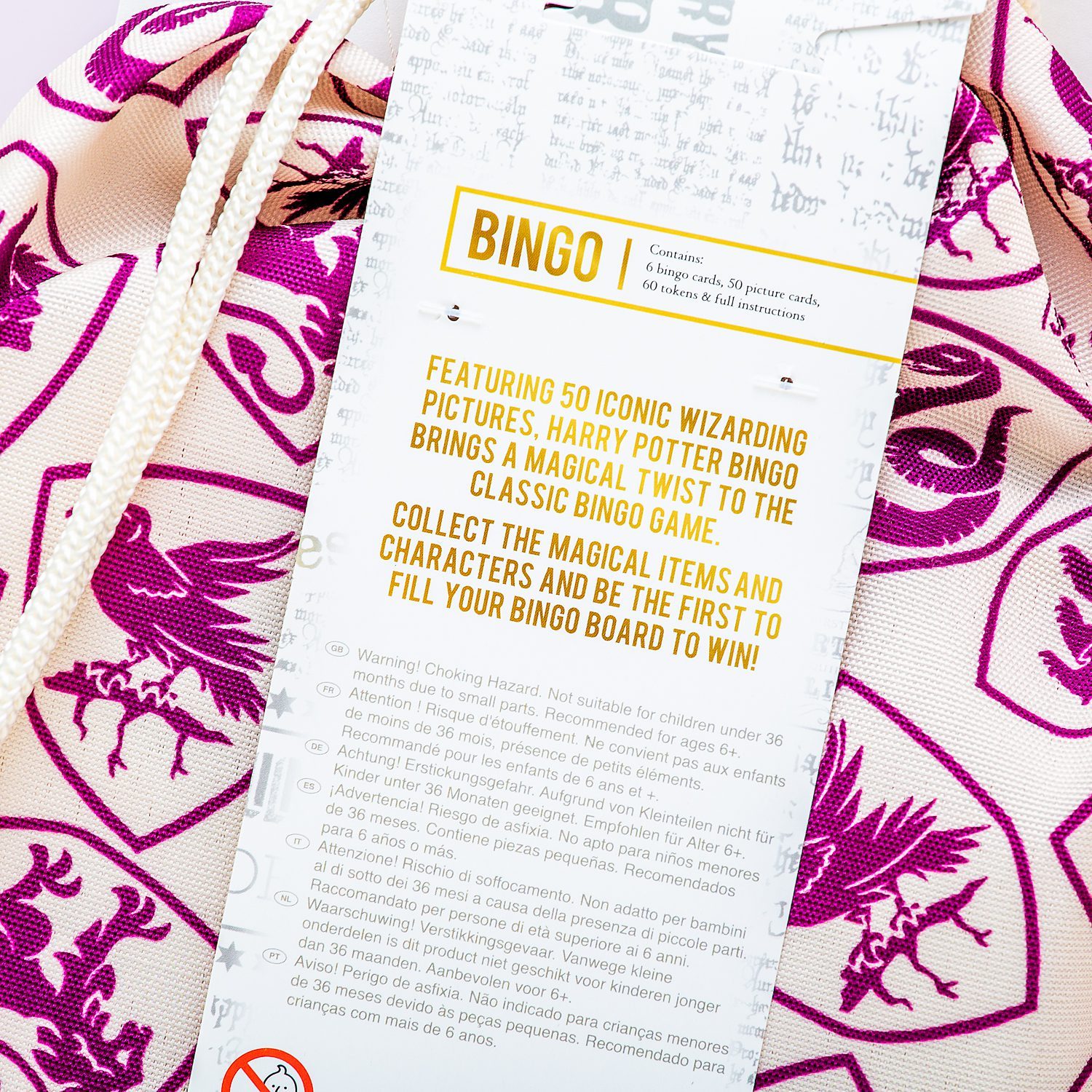 Liebst du eine Partie Bingo? Als groรŸer Harry Potter Fan wirst du das Hogwarts Bingo Spiel sicherlich groรŸartig finden. Dieses originelle Spiel ist komplett im Harry Potter Thema gehalten. Du kannst das Spiel mit maximal sechs Spielern spielen: so viele Bingokarten sind im Beutel enthalten. Zusรคtzlich erhรคltst du 120 Chips und 50 Spielkarten, die dir sagen, welches Bild du abdecken musst. Derjenige, der als erstes seine Karte voll hat, gewinnt.