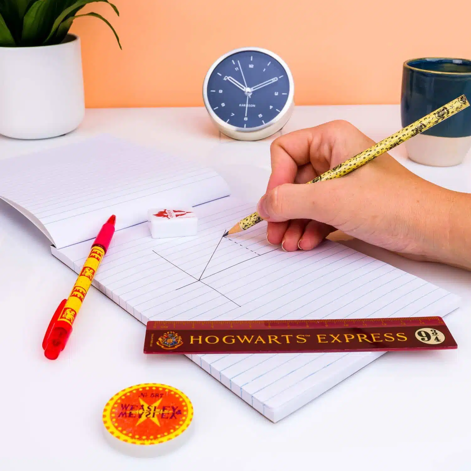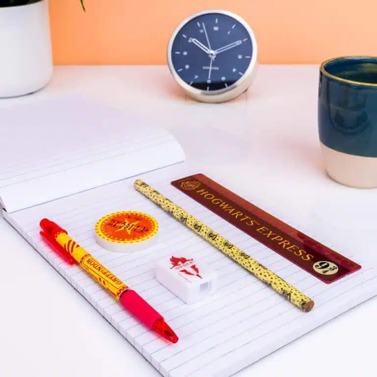 Was ist schรถner, als mit Harry Potter zur Schule zu gehen? Nimm dein Lieblingsbuchcharakter einfach in deinem Federmรคppchen mit. Das Harry Potter Schreibset (Set von 5) besteht aus fรผnf Schreibtischutensilien, auf die du eigentlich nicht verzichten kannst. Im Set enthalten sind ein Lineal, Bleistift, Stift, Radiergummi und Anspitzer. So wird Mathematik gleich viel spannender, das versprechen wir.