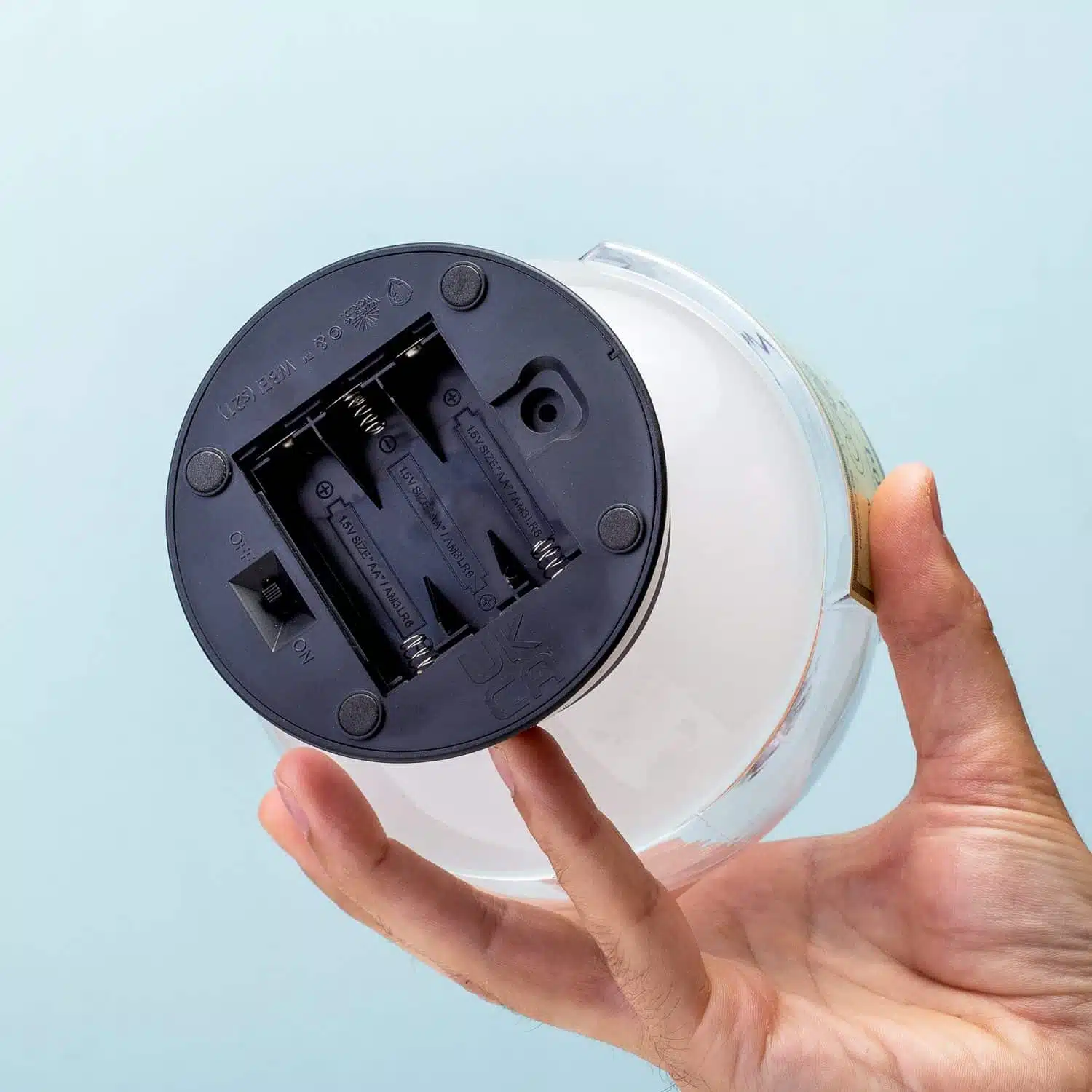 - Die kleine Variante funktioniert auch mit 3 AAA-Batterien (nicht enthalten)