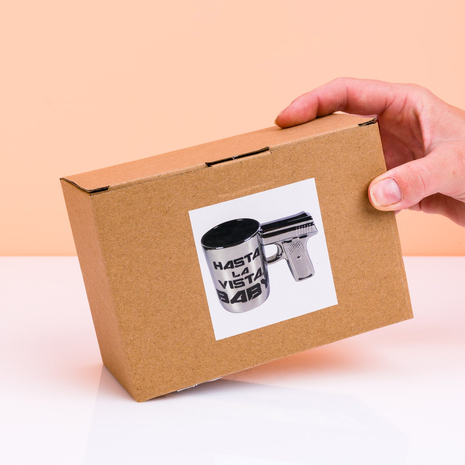 Wenn ich sage: Hasta la vista, baby, dann denkst du natรผrlich an Arnold Schwarzenegger! Die ikonischen Worte des Schauspielers aus dem Film Terminator 2 sind bei jedem รผber 35 fest im Gedรคchtnis verankert. Die Hasta La Vista Baby Tasse ist fรผr Fans des Klassikers. Die silberfarbene Tasse hat keinen Henkel, sondern einen Pistolengriff als Griff.