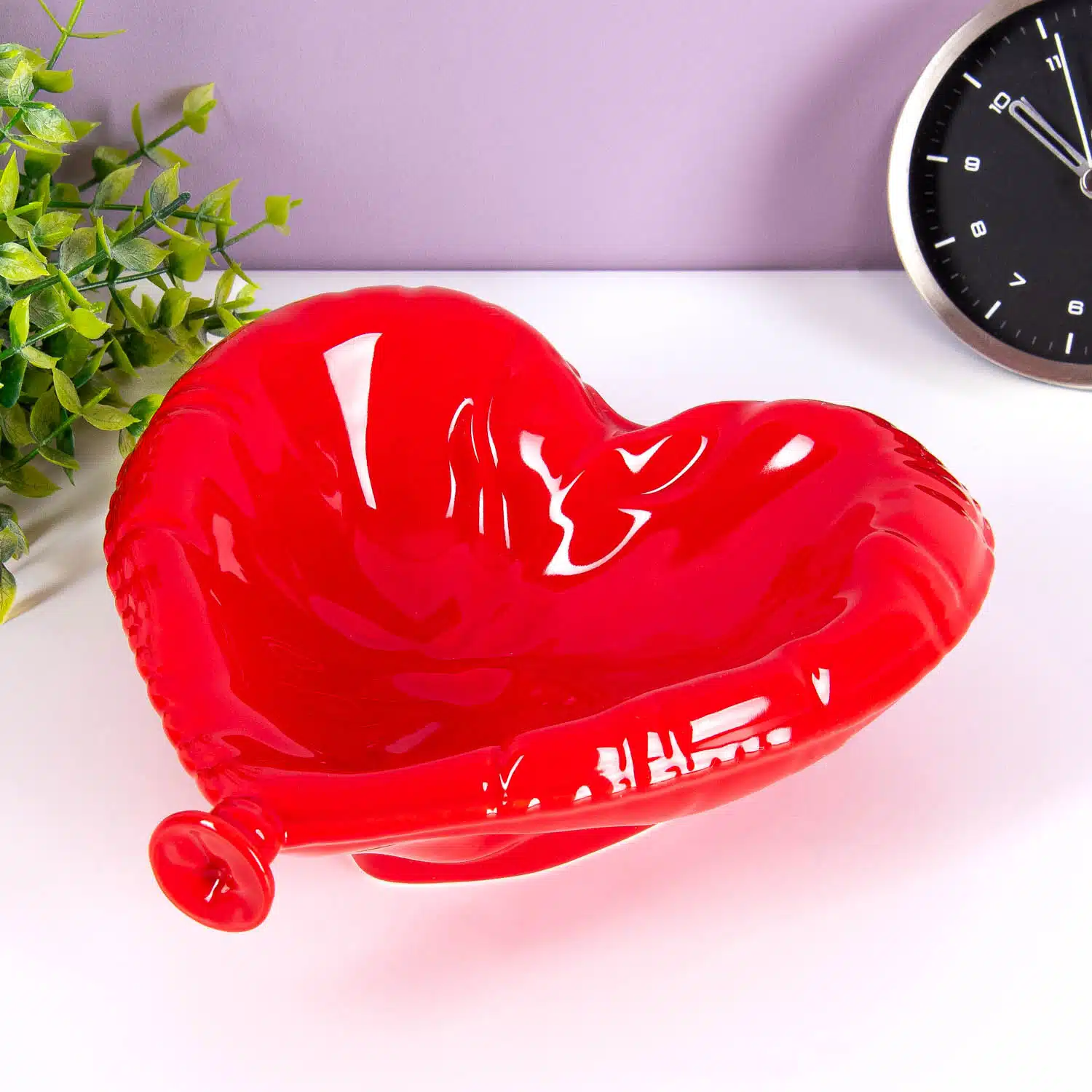 Mit dem Herzballon Schmuckschälchen von Bitten hast du deine schönsten Schmuckstücke immer griffbereit. Piercings, Ohrringe oder deinen Ehering: Stell dieses Schälchen in Herzballon-Form auf deinen Nachttisch und du kannst sie morgens direkt anlegen. Das rote Schälchen ist ein romantisches Geschenk für deine Liebste – und dabei auch sehr praktisch.