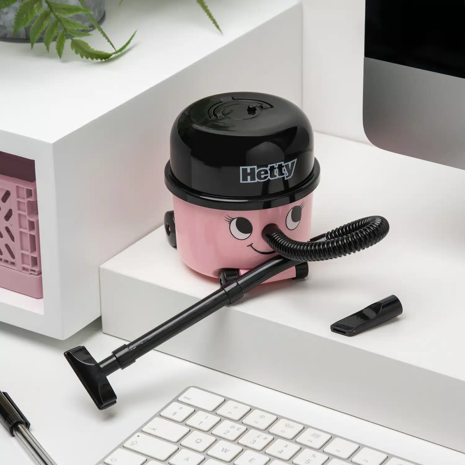 Der Hetty Mini-Staubsauger macht deinen Schreibtisch im Handumdrehen sauber. Dieses kompakte Gadget saugt Krümel, Staub und kleine Reste auf – und sieht dabei auch noch fröhlich aus. Praktisch und witzig für zu Hause oder im Büro.