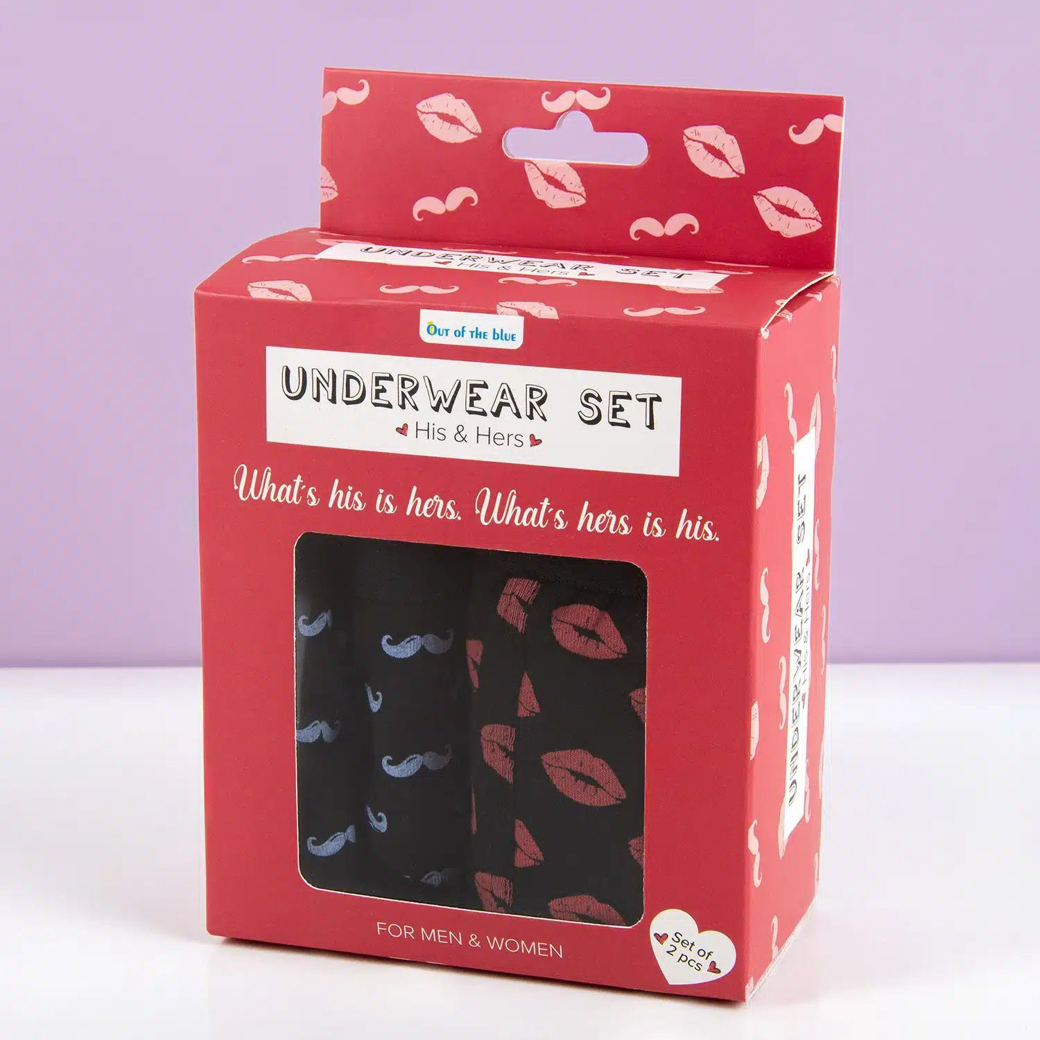 Set mit einem Slip und einer Boxershorts mit der Aufschrift his und hers
