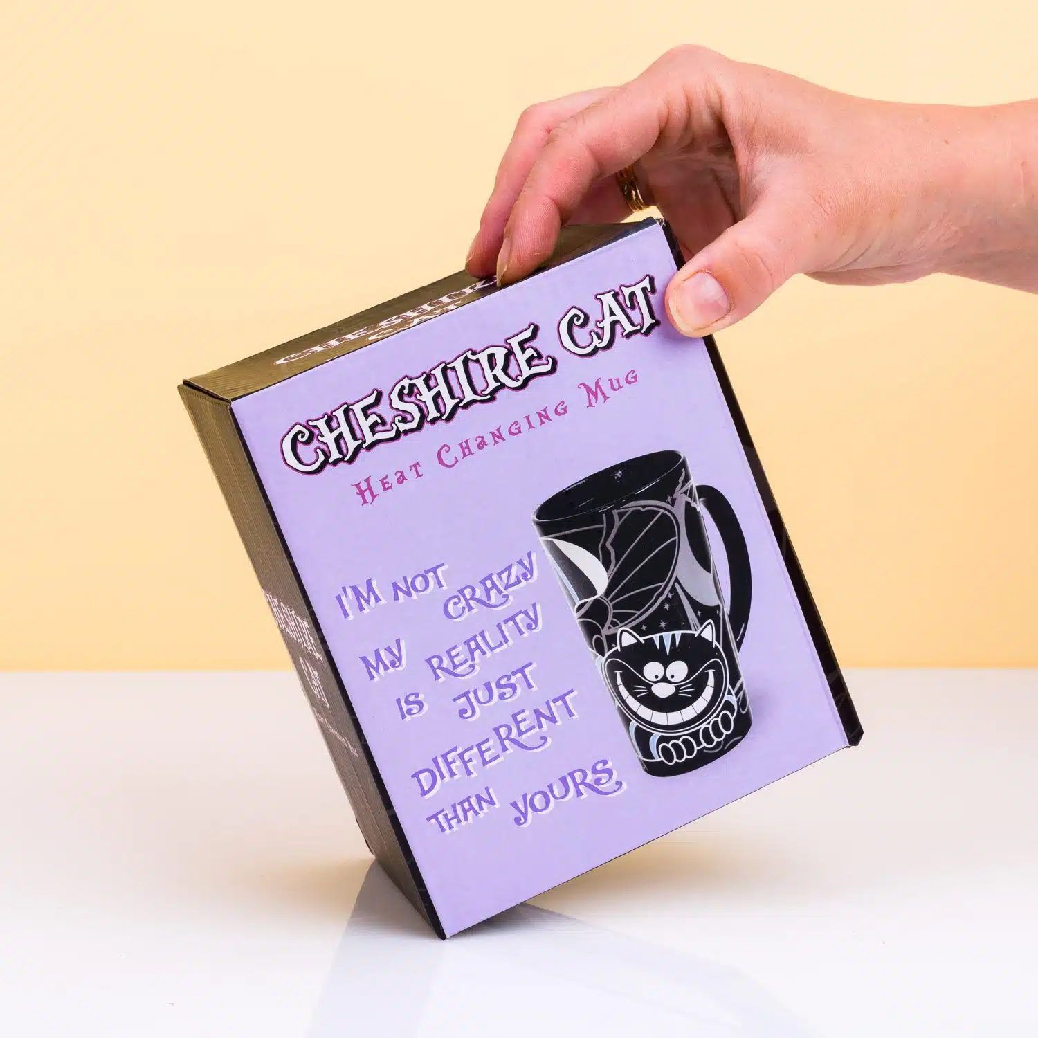 Ist die Grinsekatze Ihre Lieblingsfilm- und Buchfigur? Dann haben wir etwas Schönes für Sie! Die wärmeempfindliche Tasse „Cheshire Cat“ von Gift Republic ist mit Ihrer Lieblingskatze bedruckt. Wenn der Becher leer oder mit kaltem Getränk gefüllt ist, sieht man nur seine Augen und sein hinterhältiges Grinsen. Füllt man den Becher aber mit Heißgetränk, kommt auch der Rest der Katze zum Vorschein. Jedes Mal eine schöne Überraschung!