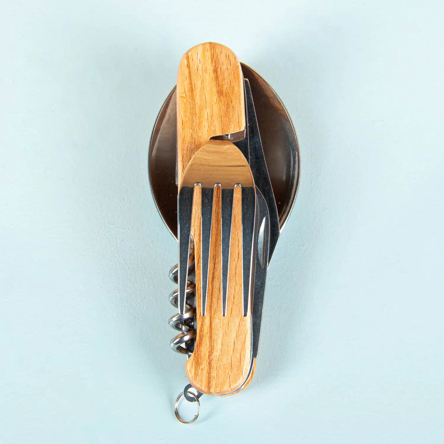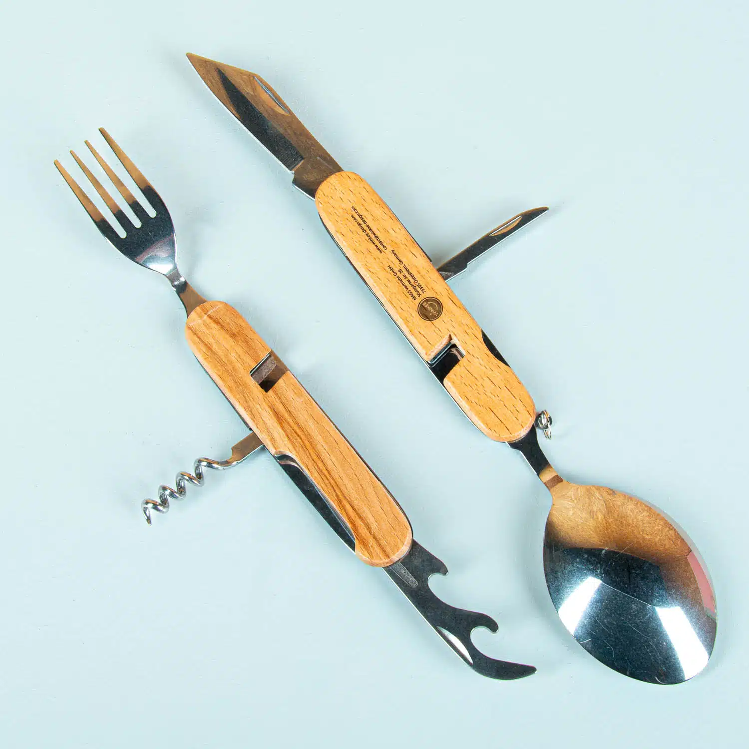 Gehst du auf Reisen und willst Plastik-Wegwerfbesteck vermeiden? Das Holz Camping-Besteck von Winkee ist eine nachhaltige Alternative für unterwegs. Dieses kompakte Besteckset im Taschenmesser-Format kannst du in der Mitte teilen, sodass du Gabel und Messer separat verwenden kannst. Perfekt fürs Camping, Picknicks, Festivals oder eine schnelle Mahlzeit im Auto. Ein umweltfreundliches Geschenk für Naturliebhaber!