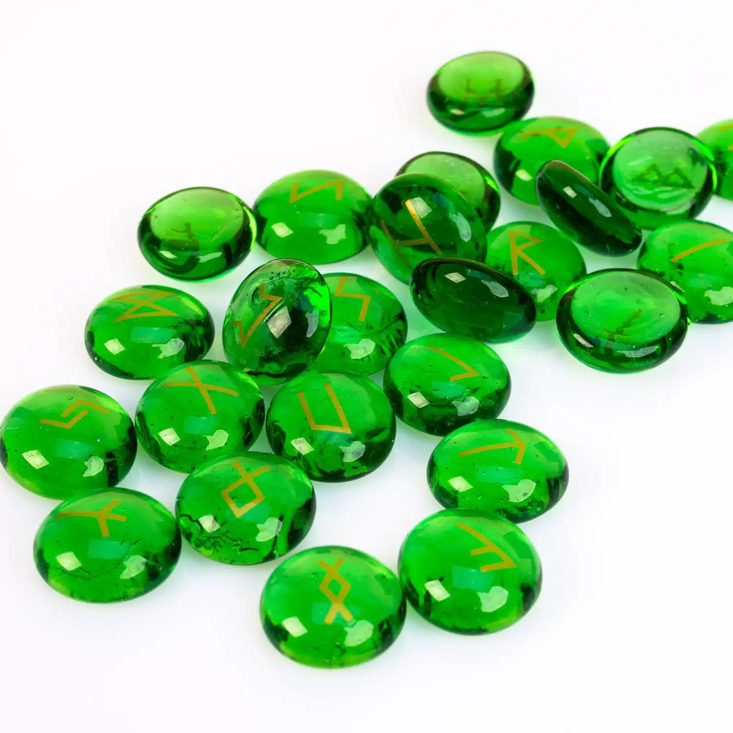 • Inhalt Runen: 25 Runensteine, drei Eukalyptus-Teelichter, zwanzig begleitende Karten, ein Samttuch und Samtbeutel