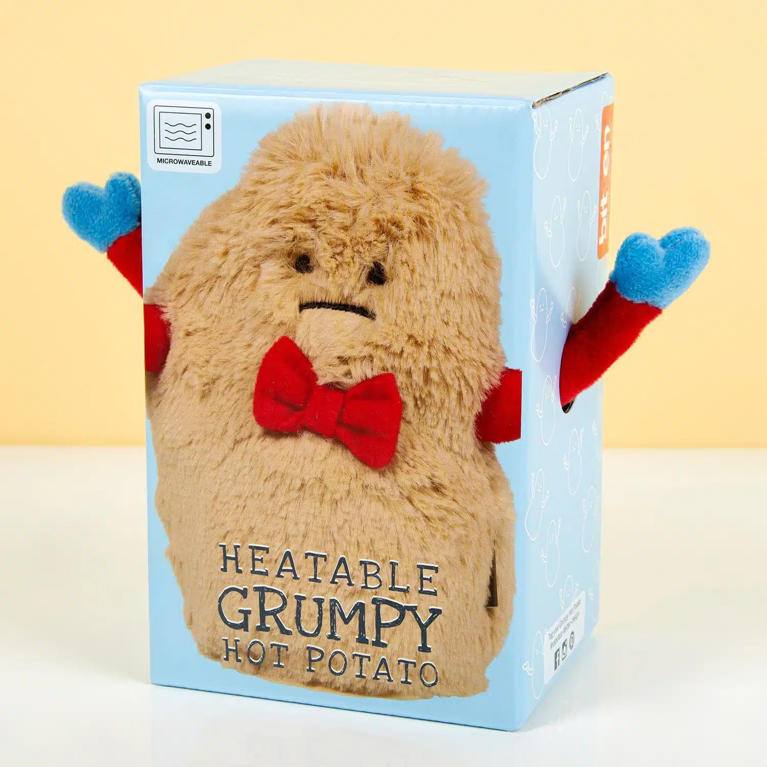 Kalte Hände, schmerzende Muskeln und Bauchschmerzen verschwinden wie Schnee in der Sonne mit dem Hot Potato Wärmekissen von Bitten. Dieses lustige Wärmekissen sieht aus wie eine große Kartoffel. Es hat Arme und eine Fliege und ist in zwei Varianten erhältlich: eine, die fröhlich schaut, und eine, die grimmig schaut. Aber beide Varianten sind sehr hilfreich und sorgen dafür, dass dir schnell wieder warm wird. Dafür legst du es einfach in die Mikrowelle, damit die Füllung aus Bio-Weizen und Lavendel warm wird.