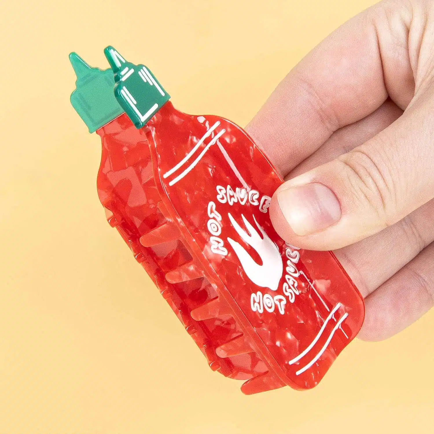 - Haarspange in Form einer Chilisaucenflasche