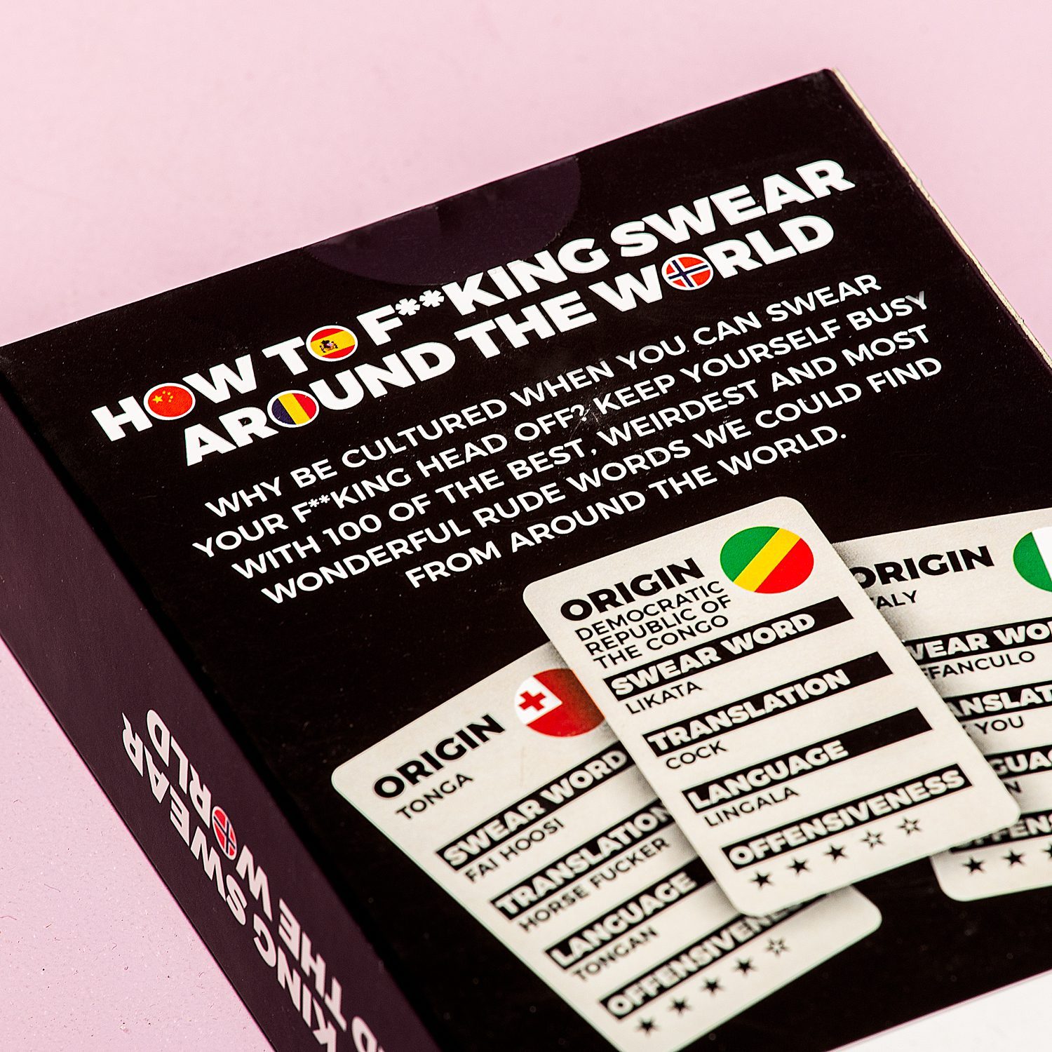 Ich? Ja, ich kann ziemlich gut รผber die Grenzen fluchen! Das habe ich mit den How to fucking swear around the world-Karten von Gift Republic gelernt. Sehr empfehlenswert, da lernt man zum Beispiel, wie man auf Dรคnisch „kiss my ass“ sagt. Dieses Kartenset ist ein witziges Geschenk fรผr Reisende und Leute, die immer dasselbe Schimpfwort verwenden. So lernen sie mal was Neues. Gefรคllt dir das nicht? Vaffanculo!