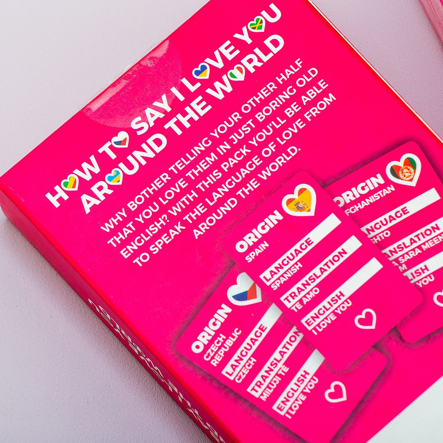 Sind Sie (oder wissen Sie es) ein leicht brennbarer Reisender, der weiรŸ, wie man in jedem Land eine neue Liebe ausgrรคbt? Mit den How to say I love you around the world-Karten von Gift Republic machen Sie es sich leicht, ihm oder ihr Ihre Liebe zu erklรคren.Dieses Set aus 100 Karten zeigt dir, wie man in verschiedenen Sprachen โ€žIch liebe dichโ€œ sagt.