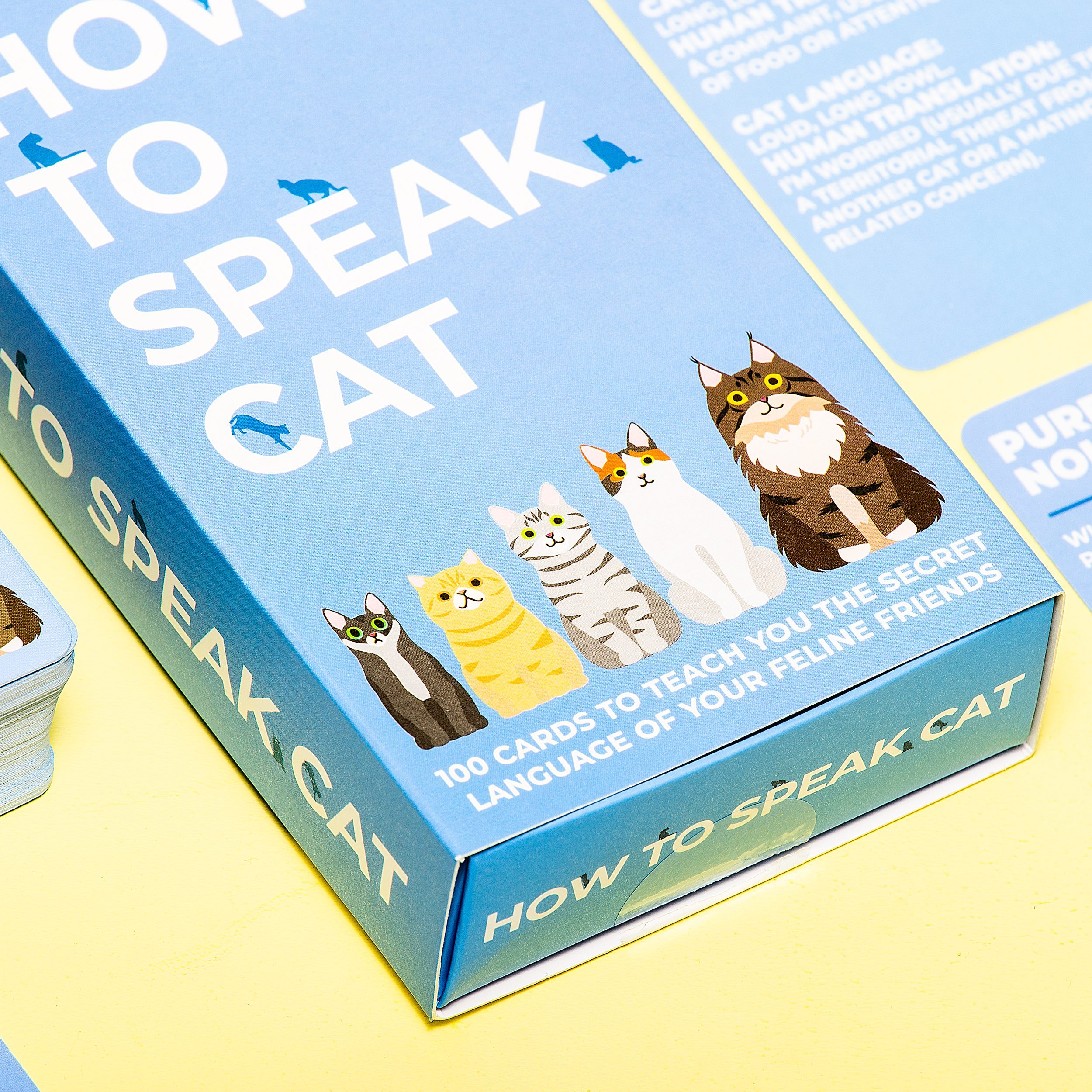 Wie erkennst du einen liebevollen Blick deines Hundes? Und warum liegt deine Katze so komisch? Die How to speak Karten von Gift Republic helfen dir, die Körpersprache deines Haustieres zu interpretieren. Mit Illustrationen, Tier- und Menschensprache lernst du, warum dein Hund oder deine Katze tut, was er tut. Das Set enthält insgesamt hundert Karten mit englischen Texten. Verfügbar in den Varianten Hund oder Katze.