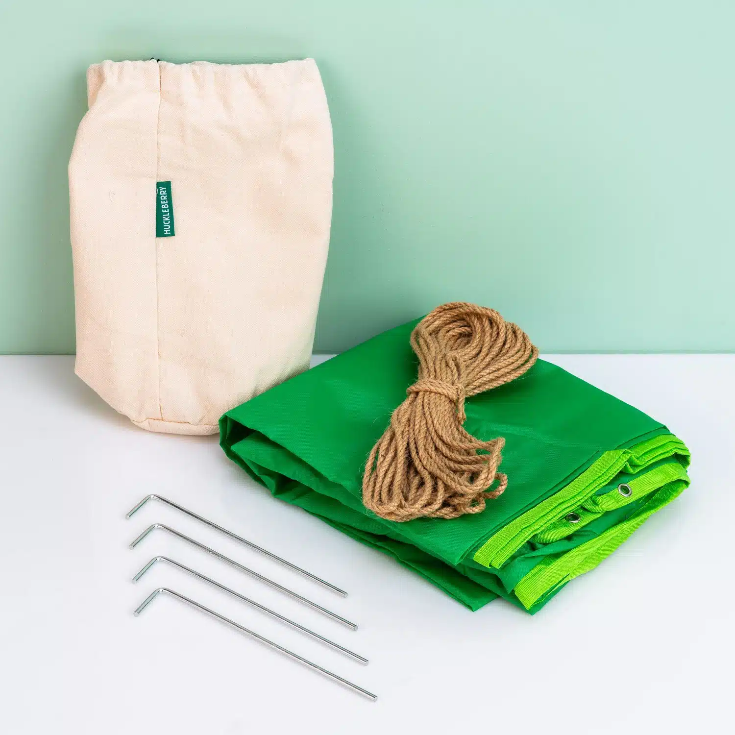 Gib deinem kleinen Abenteurer einen รผberdachten Platz im Garten oder beim Camping, um tagsรผber spielen oder lesen zu kรถnnen. Das Huckleberry Spielzelt von Kikkerland ist so gestaltet, dass dein Kind einen eigenen Platz in der Natur hat. Das Set besteht aus einer wasserdichten Bodenplane und einem Zeltstoff, der darรผber gespannt wird. Diesen Stoff befestigst du zwischen zwei Bรคumen und mit Heringen im Boden.