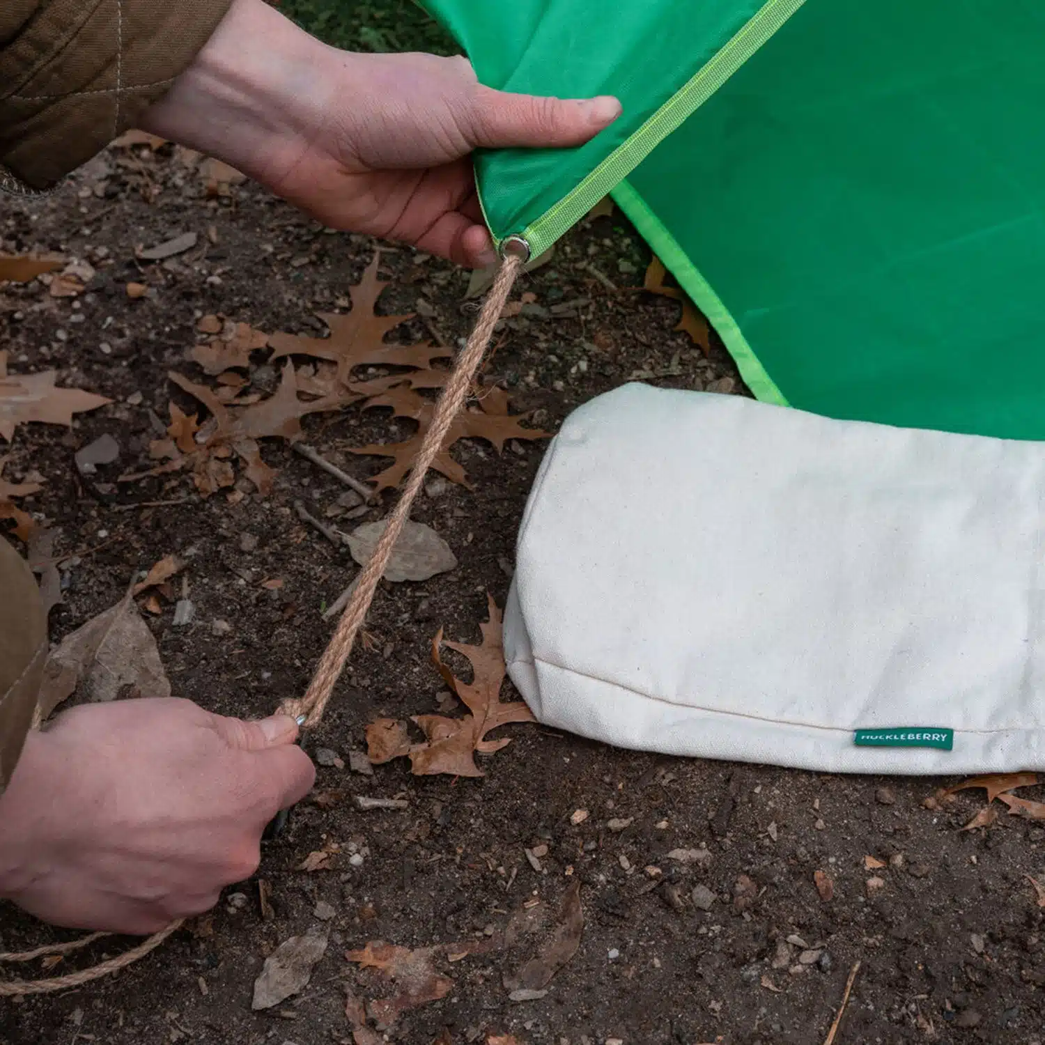- Mit wasserdichter Bodenplane, Zeltstoff, Heringen und Seil