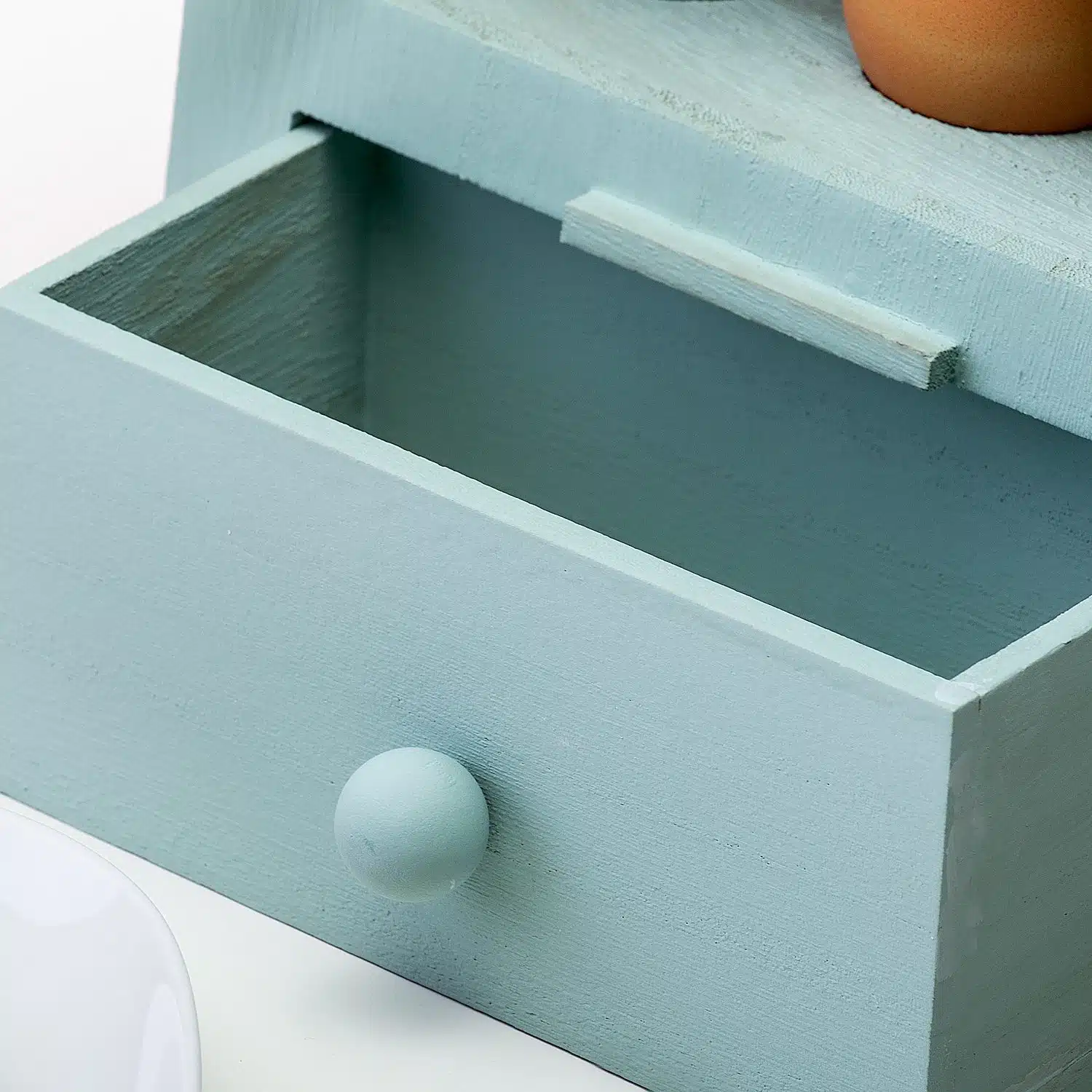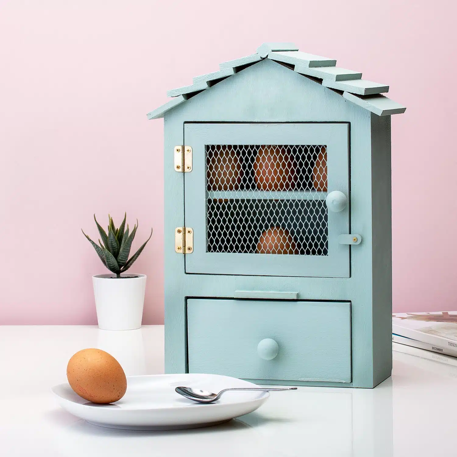 Wir leben nicht alle auf einem Bauernhof, aber mit dem Hühnerstall Eierhalter holst du dir dennoch den ländlichen Bauernhofstil ins Haus. Dieser witzige Halter, der zum Aufbewahren von Eiern entworfen wurde, hat die Form eines Hühnerstalls! Der Holz-Hühnerstall hat oben zwei Legeflächen mit Platz für sechs Eier. Unten befindet sich eine Schublade, in der du Eierbecher aufbewahren kannst. Und die kleine Rampe ist ein lustiges Detail, aber es ist besser, die Eier nicht herunterrollen zu lassen.