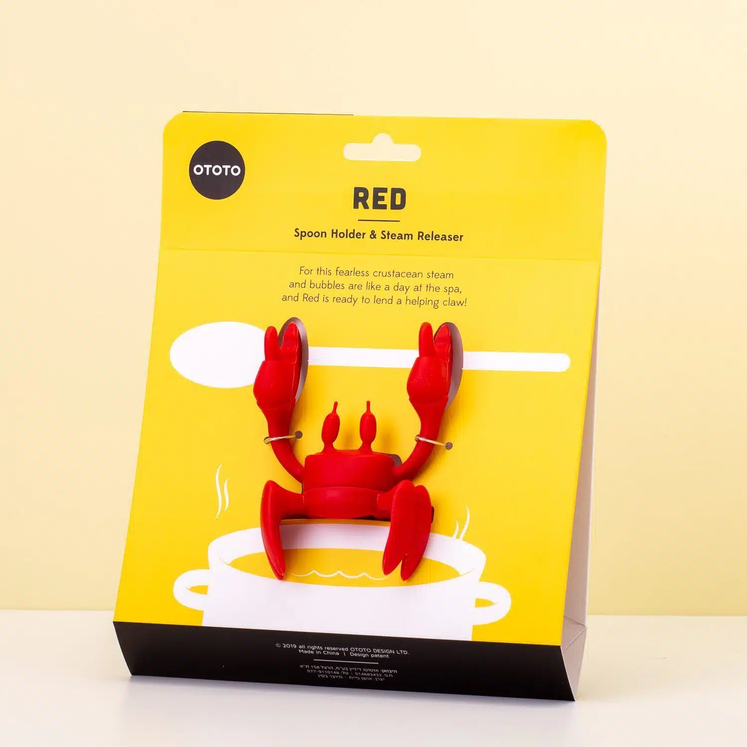 Verhindern Sie mit dem Red Hummer-Löffelhalter von Ototo, dass das Reis- und Nudelwasser stark überkocht. Dieser handliche Hummer hilft Ihnen gerne mit der Schere. Indem Sie eine Holzkelle über Ihre Pfanne stellen, verhindern Sie, dass Ihr Wasser überkocht. Die Luftblasen werden sofort zerstört, wenn sie auf das Holz treffen. Aber man bekommt natürlich einen dreckigen Löffel. Um dies zu verhindern und dafür zu sorgen, dass der Dampf entweichen kann, verwenden Sie den Löffelhalter in Hummerform. In seiner Schere hält er mühelos eine Kelle. Sie können aber auch den Deckelrand Ihrer Pfanne darin einklemmen. So bleibt genug Platz, damit der Dampf entweichen kann. Dieser Silikon-Küchenhelfer ist für klobige Herde unverzichtbar.
