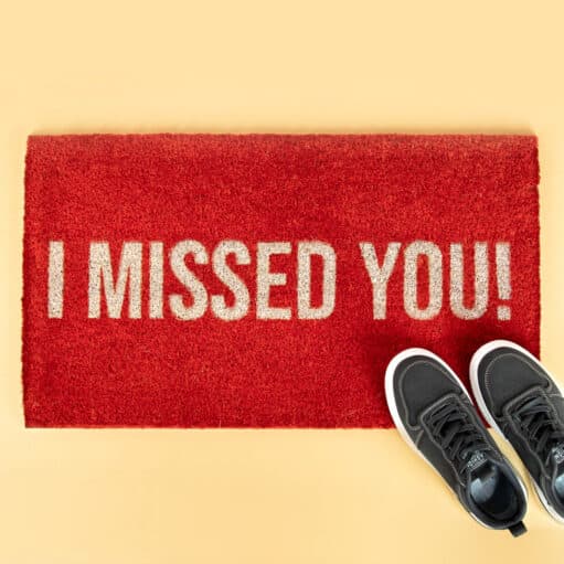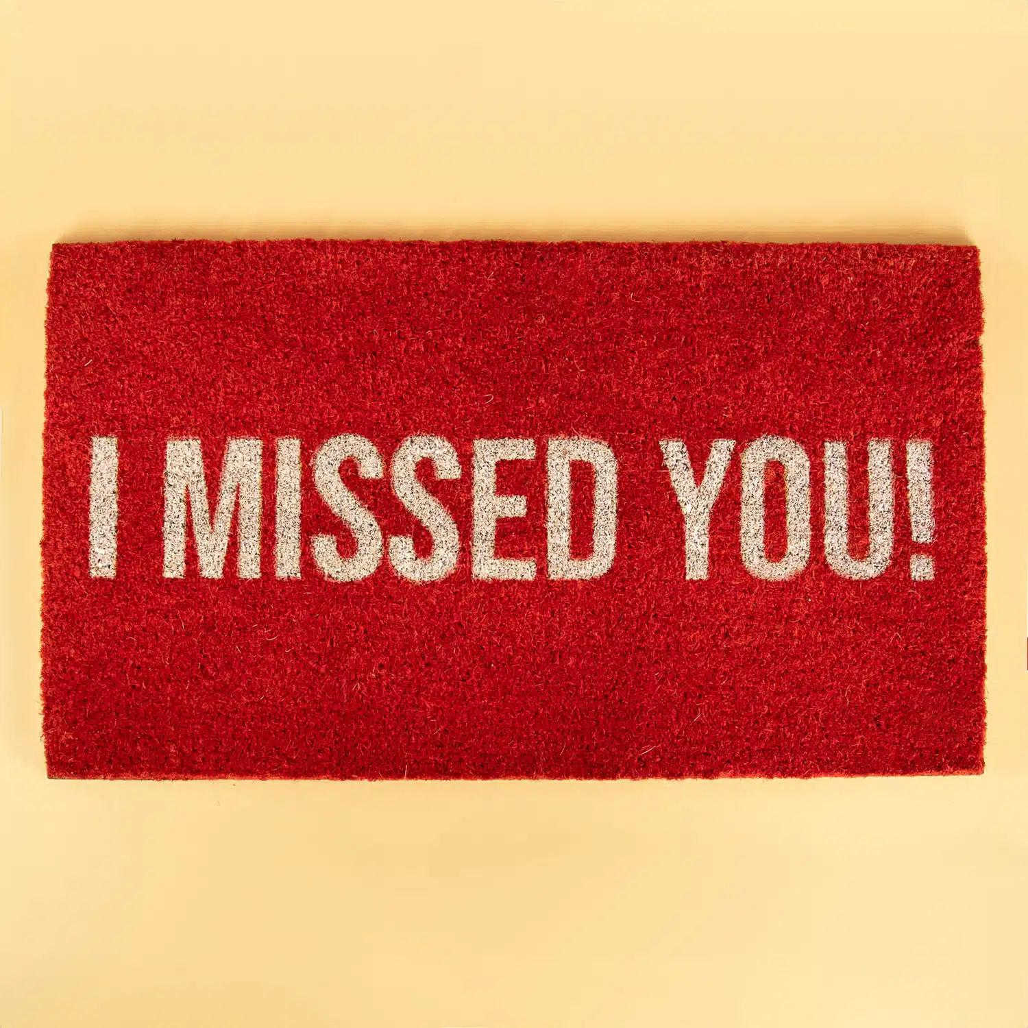 - Rote Fußmatte mit der Aufschrift: I missed you!