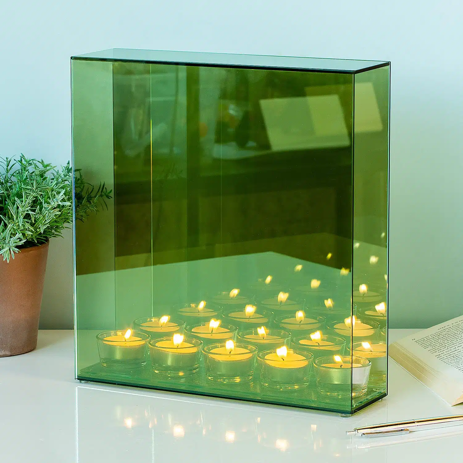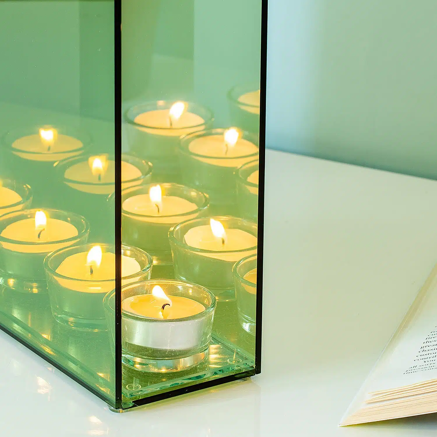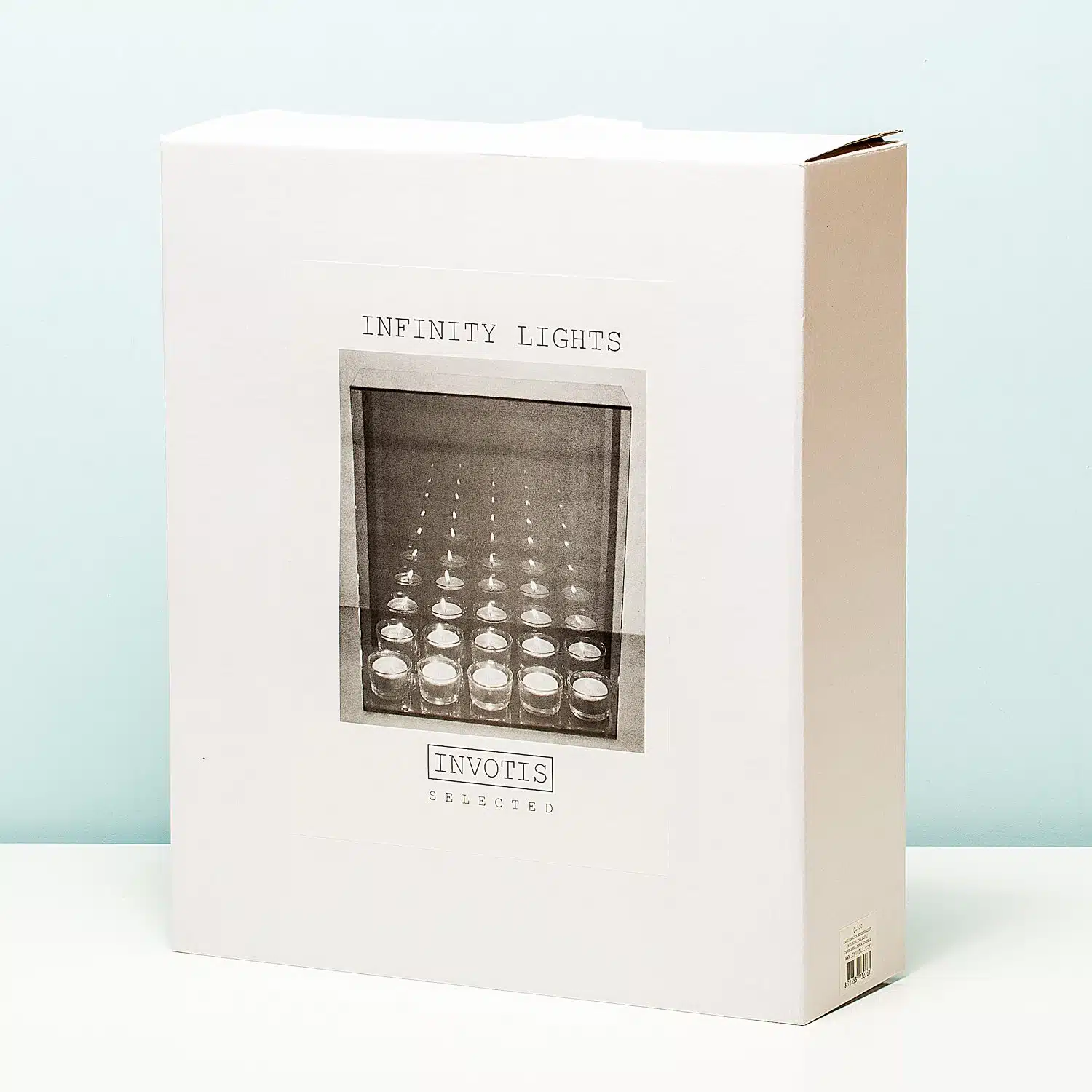 Mit einem Teelicht machst du eine kalte und kühle Umgebung sofort gemütlich. Stelle dir vor, was eine endlose Reihe von Kerzen mit der Atmosphäre macht. Mit dem Infinity Teelichthalter scheint es, als hättest du hunderte Kerzen angezündet, aber wer hat schon Zeit dafür? In Wirklichkeit sind es fünf Teelichter. Der Teelichthalter von Invotis besteht aus Glas und hat eine spiegelnde Funktion. Dadurch siehst du Dutzende von Flammen reflektiert. Wenn du Lust auf einen romantischen Abend hast oder einfach nur einen Stimmungsmacher für zu Hause suchst, ist der Infinity Teelichthalter von Invotis ein perfektes Accessoire.