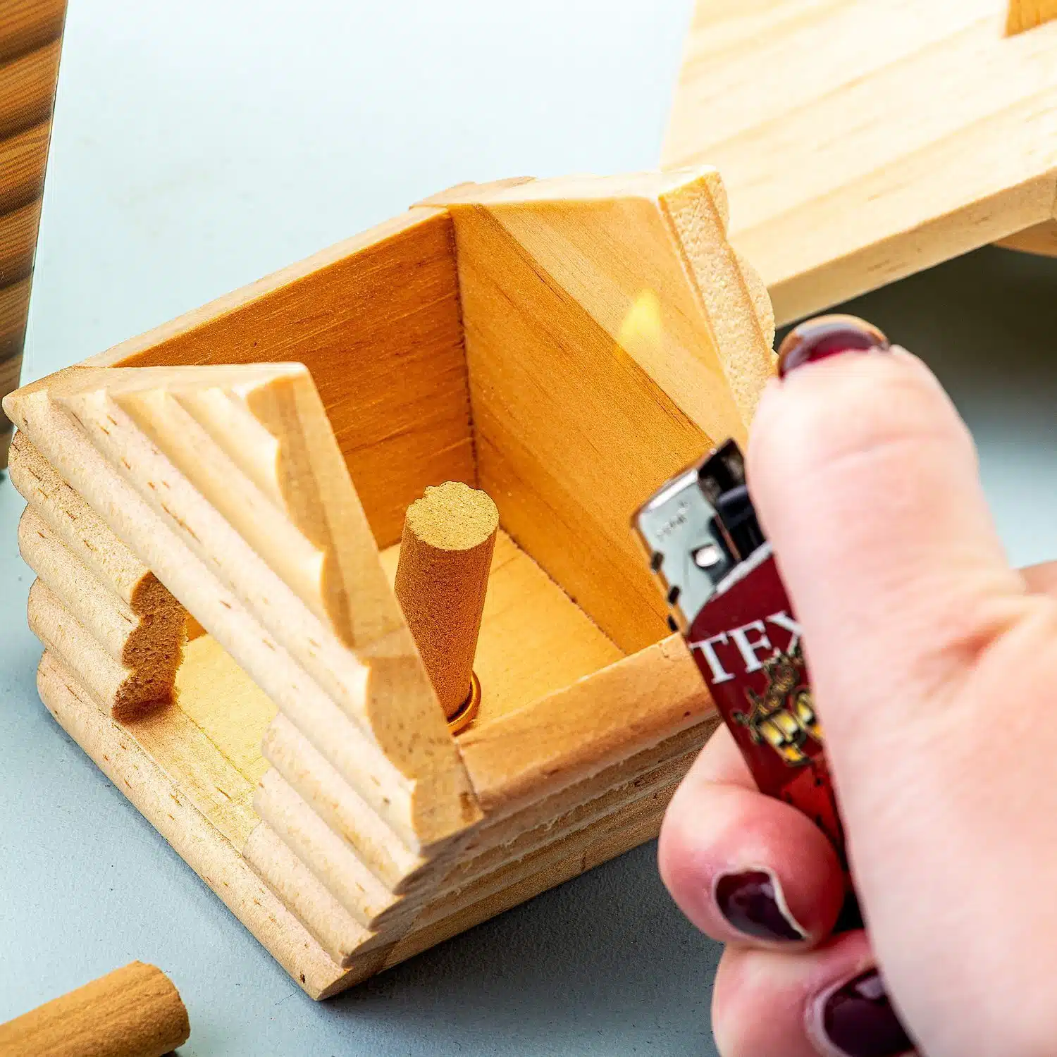 - Mit zehn Duftstรคbchen mit dem Duft von Zirbenholz