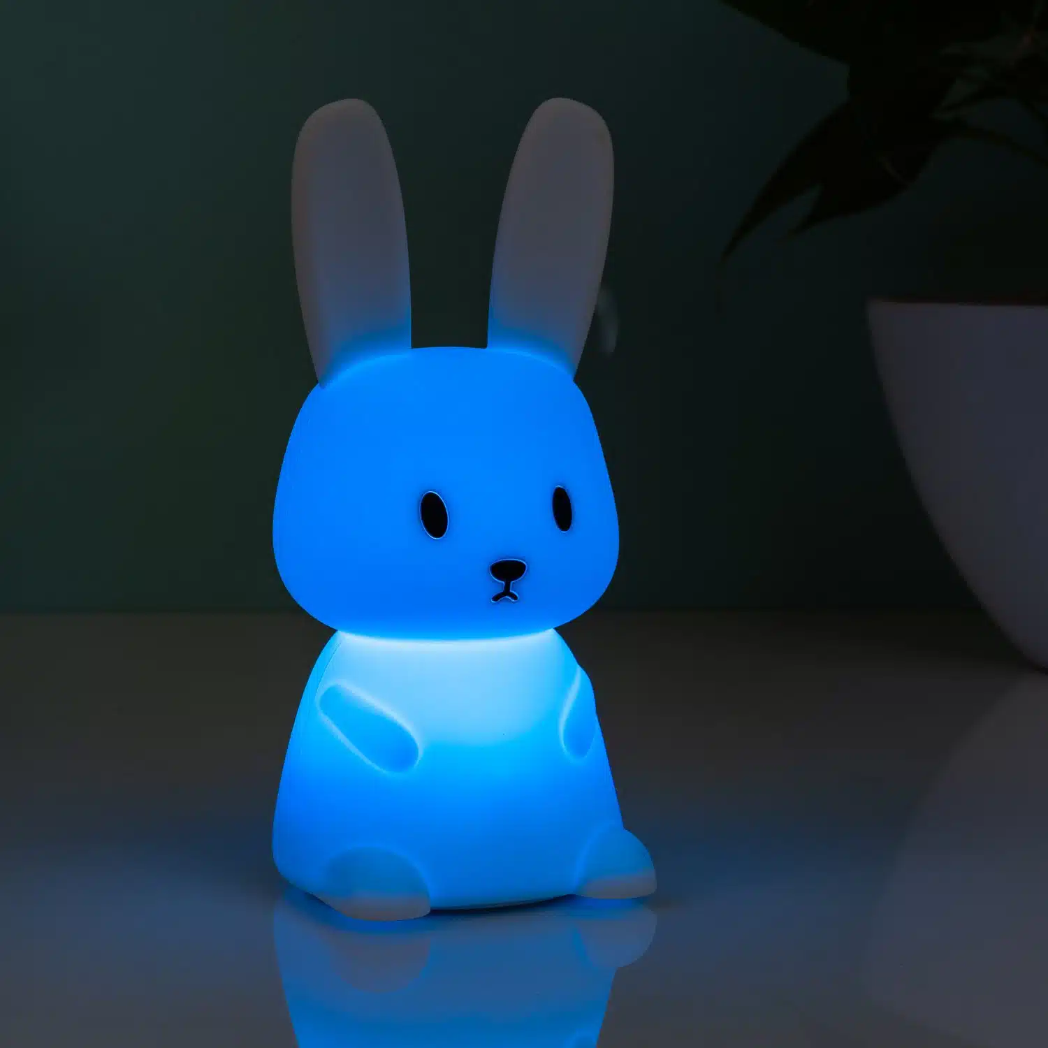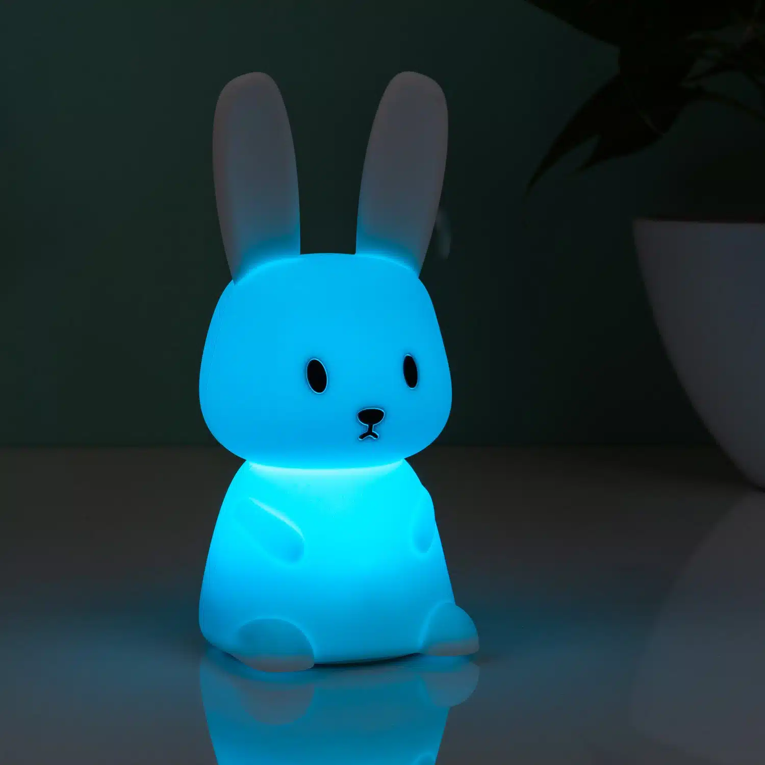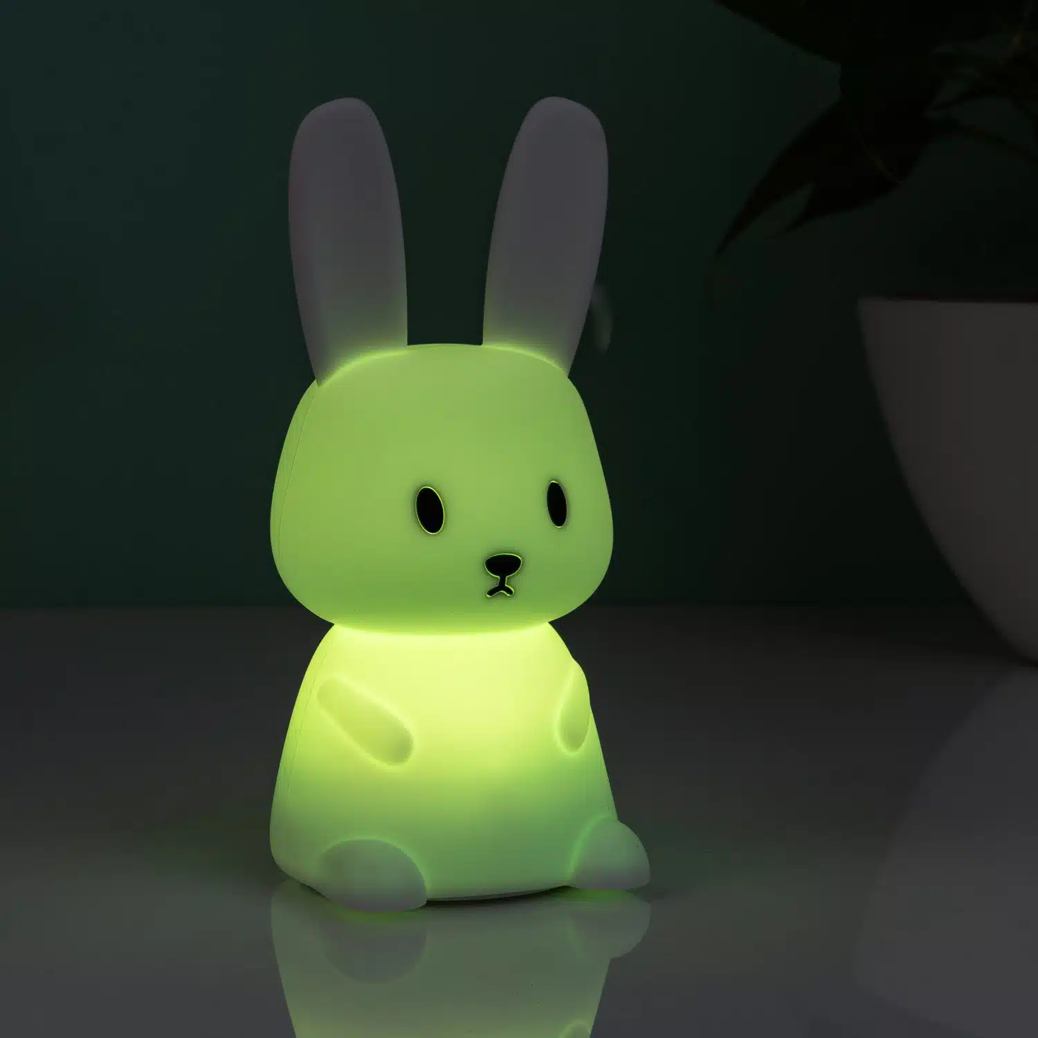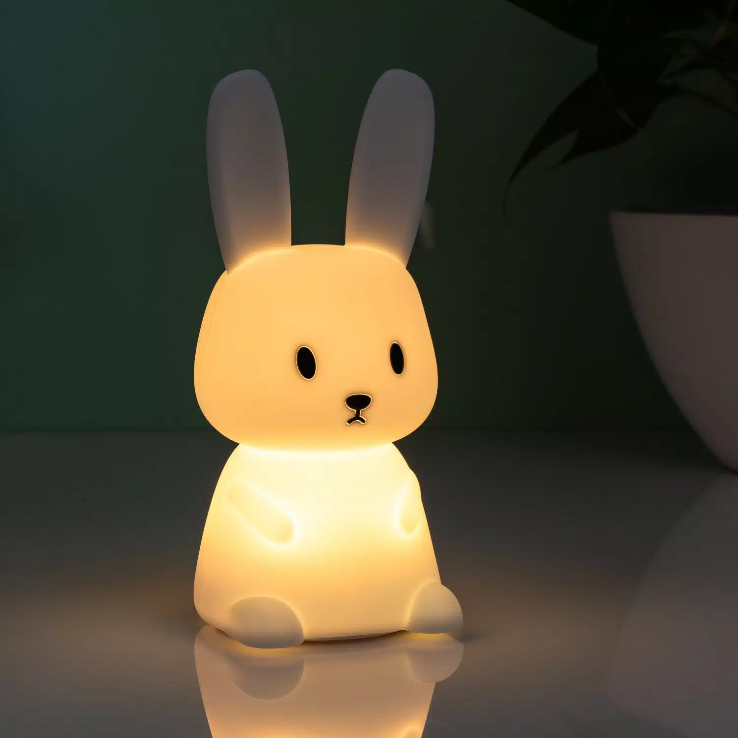 Das Kaninchen Nachtlicht von Winkee zaubert jedem Kind ein Lächeln ins Gesicht. Dieses niedliche Kaninchen hält Wache. Das Silikon Nachtlicht gibt nicht nur warmweißes Licht ab, sondern auch viele andere Farben wie Grün, Blau, Lila und Rot. Hast du eine Farbe gefunden, die dir gefällt, kannst du sie fixieren, indem du das Kaninchen berührst. Mit diesem Kaninchen auf dem Nachttisch wird dein Kind sicherlich wunderbar einschlafen.
