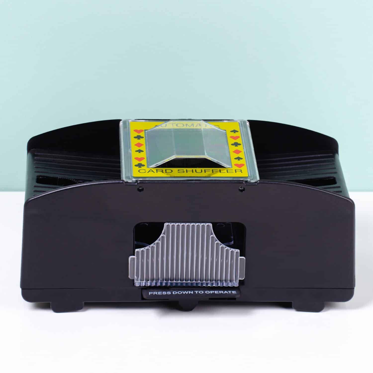 Liebst du Poker und andere Kartenspiele, aber das Mischen ist nicht deine Stรคrke? Mit der Kartenmischmaschine ist dieses Problem gelรถst. Dieser automatische Kartenmischer mischt die Spielkarten fรผr dich. Er hat zwei Fรคcher fรผr jeweils ein Kartendeck und kann somit insgesamt 104 Karten auf einmal mischen. Die gemischten Karten kommen an der Vorderseite des Mischers heraus.