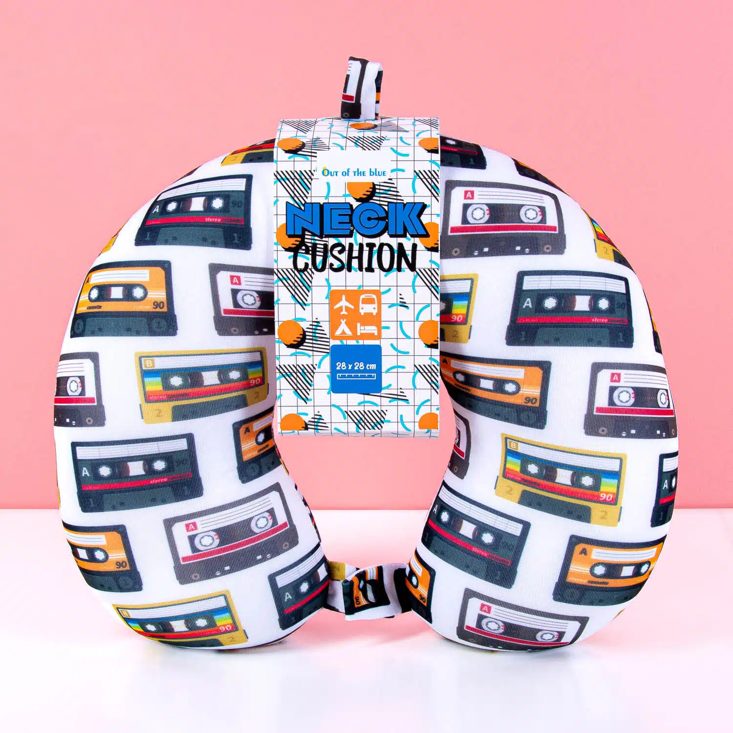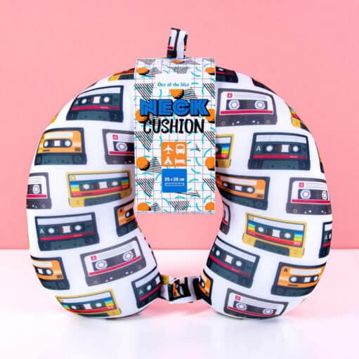 Das Kassetten-Nackenkissen bietet dir Unterstützung auf langen Reisen. Das wunderbar weiche Nackenkissen hat ein Retro-Design mit Kassettenmotiven. Bequem und ein tolles Geschenk für nostalgische Musikliebhaber.