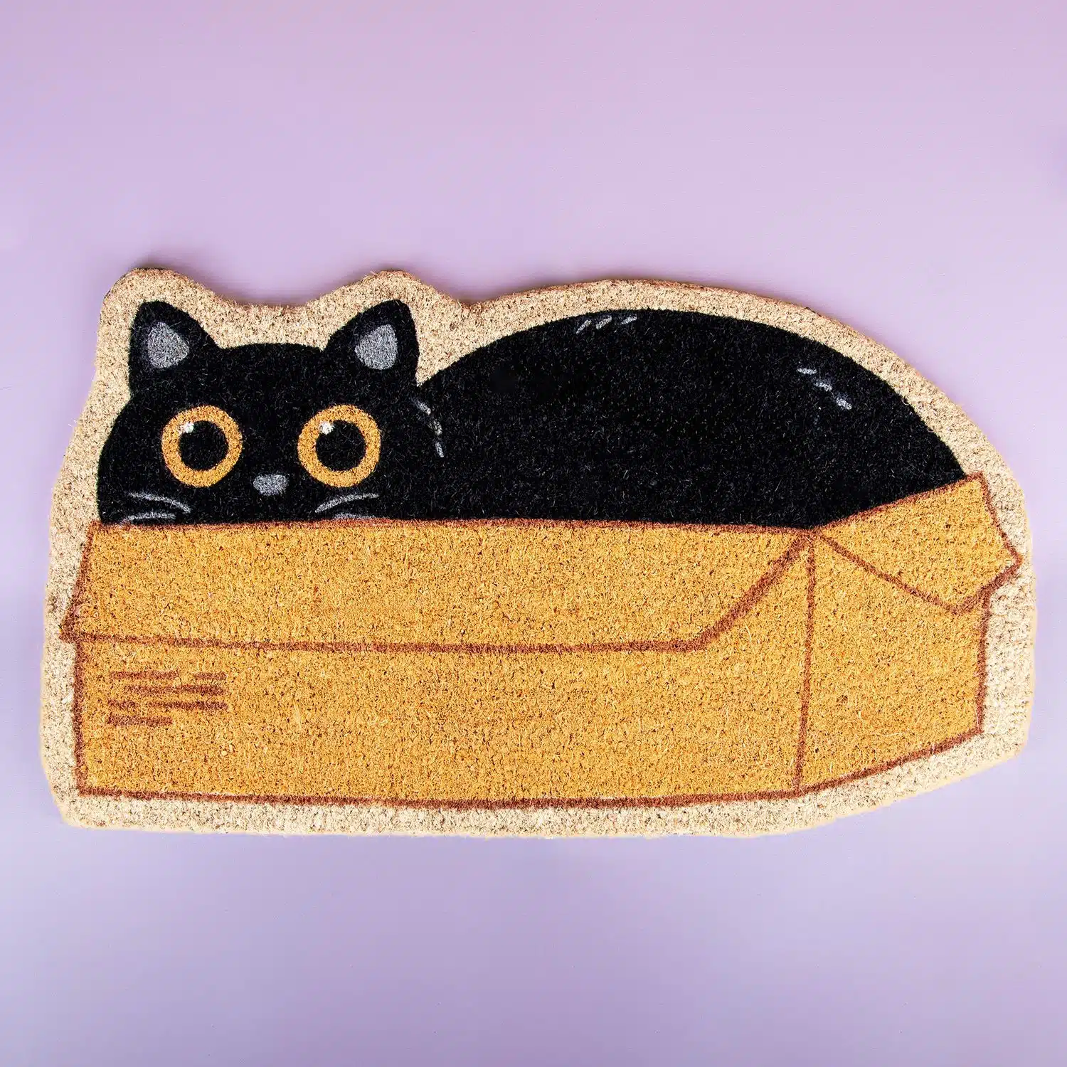 Fußmatte in Form einer Kiste mit einer Katze darin von Fisura