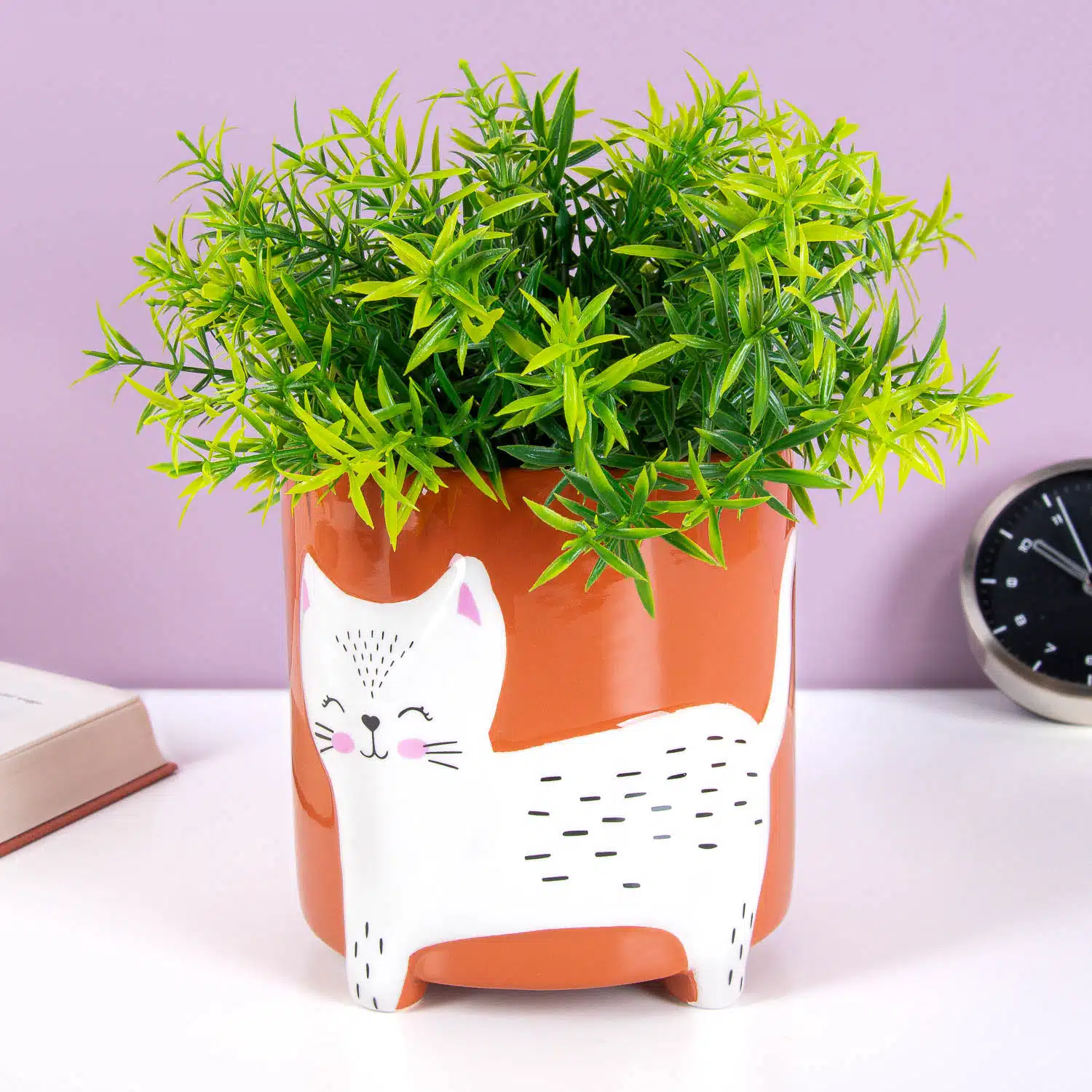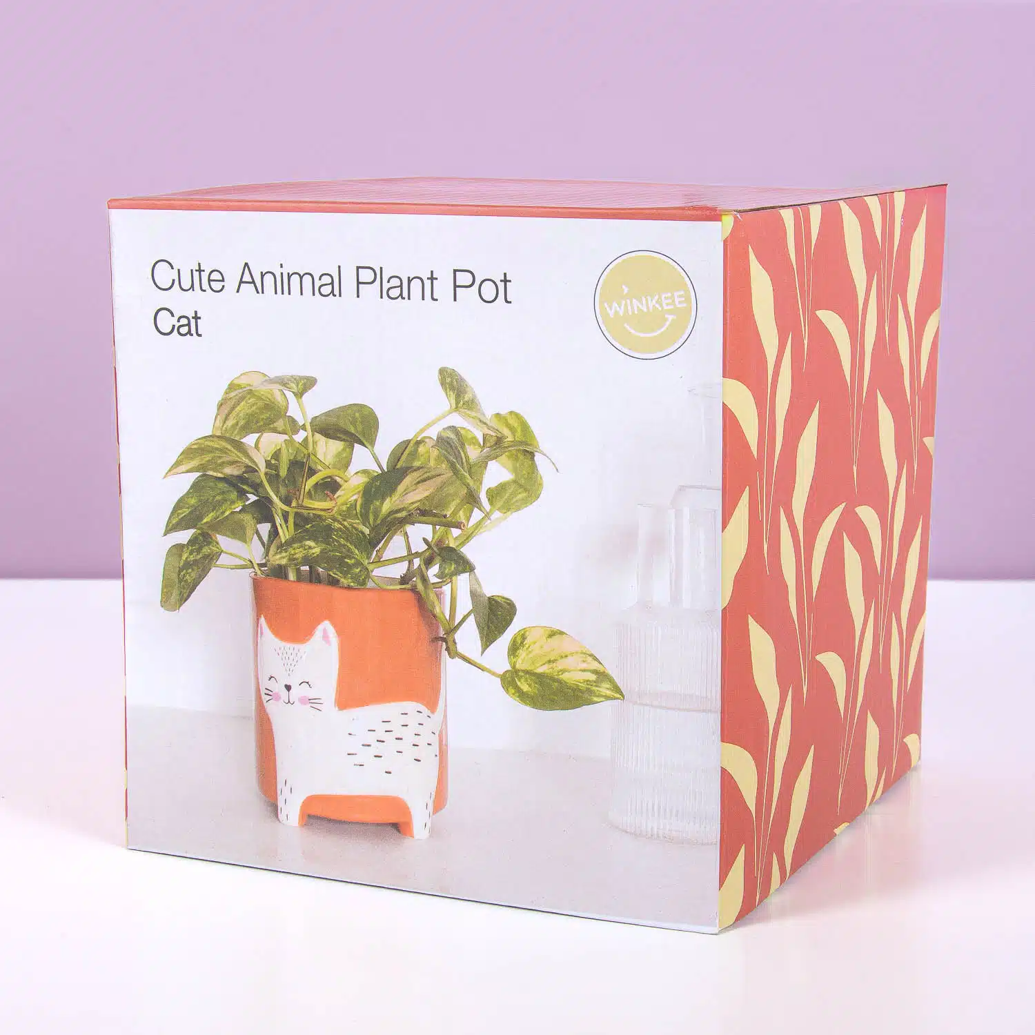 Der Katzen-Blumentopf von Winkee ist ein terrakottafarbener Keramik-Blumentopf mit einem süßen weißen Kätzchen mit geschlossenen Augen darauf. Perfekt für kleine Pflanzen und als dekoratives Element. Ideales Geschenk für Katzen- und Pflanzenliebhaber. Denn Pflanzen wachsen besser mit einem schlafenden Kätzchen dabei – das ist einfach so!