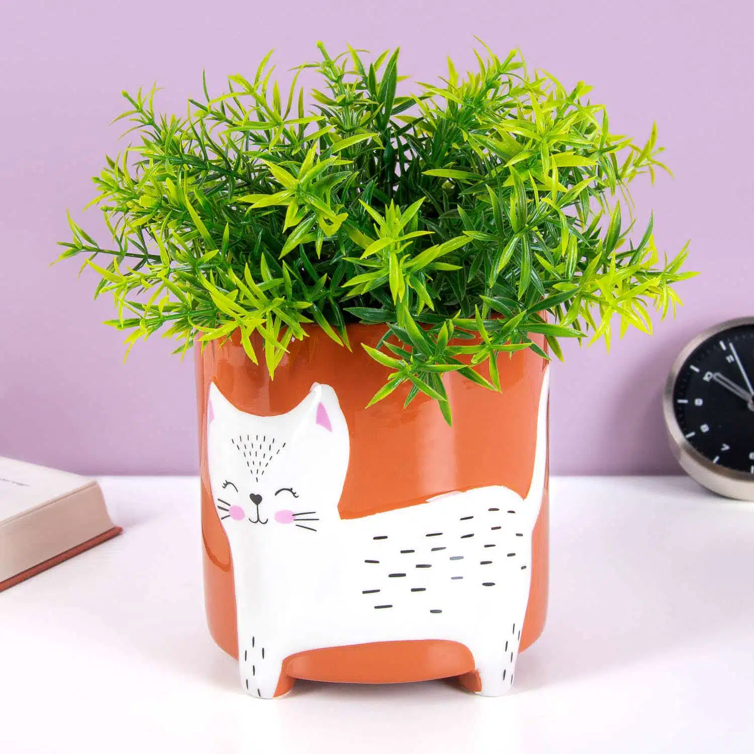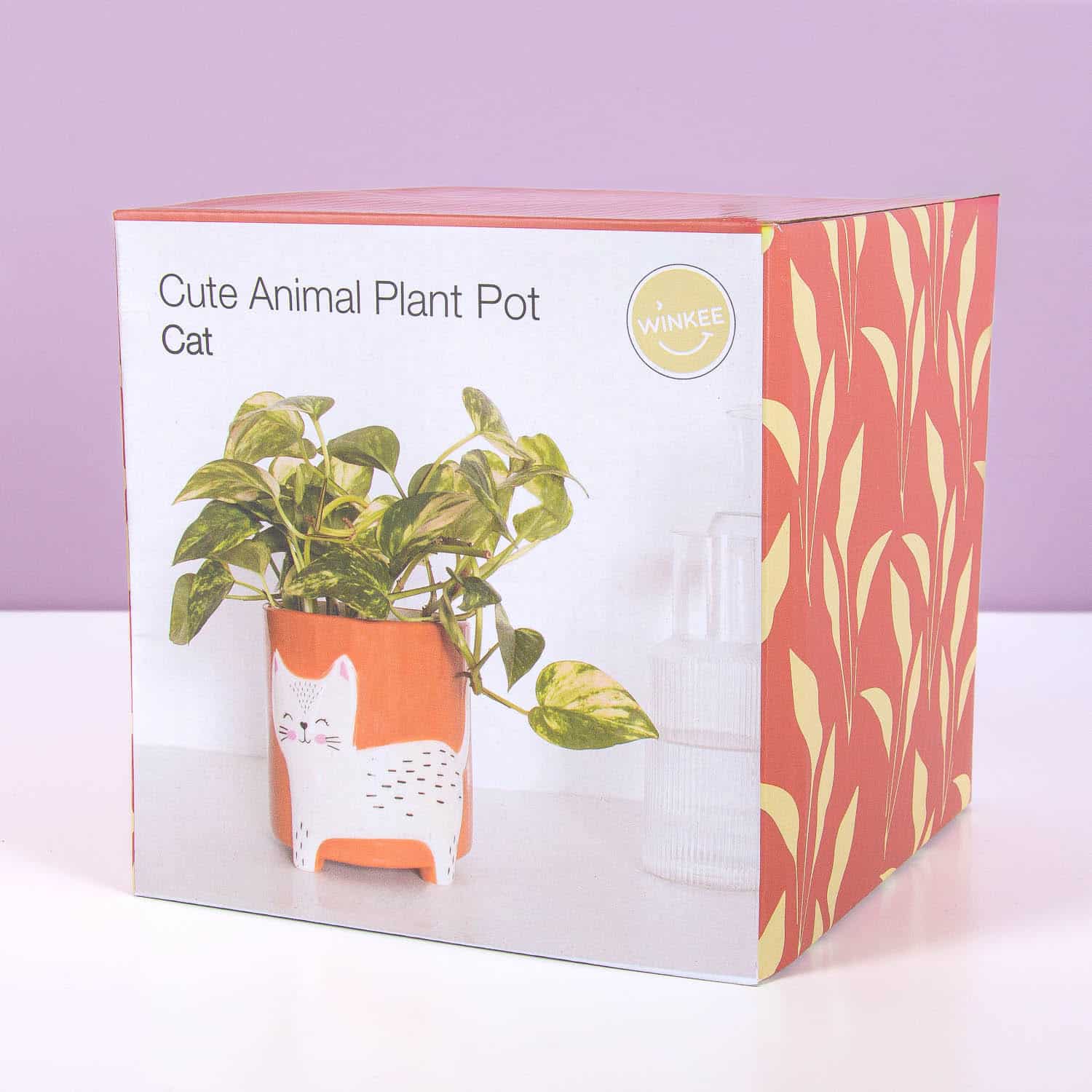 Der Katzen-Blumentopf von Winkee ist ein terrakottafarbener Keramik-Blumentopf mit einem sรผรen weiรen Kรคtzchen mit geschlossenen Augen darauf. Perfekt fรผr kleine Pflanzen und als dekoratives Element. Ideales Geschenk fรผr Katzen- und Pflanzenliebhaber. Denn Pflanzen wachsen besser mit einem schlafenden Kรคtzchen dabei โ das ist einfach so!