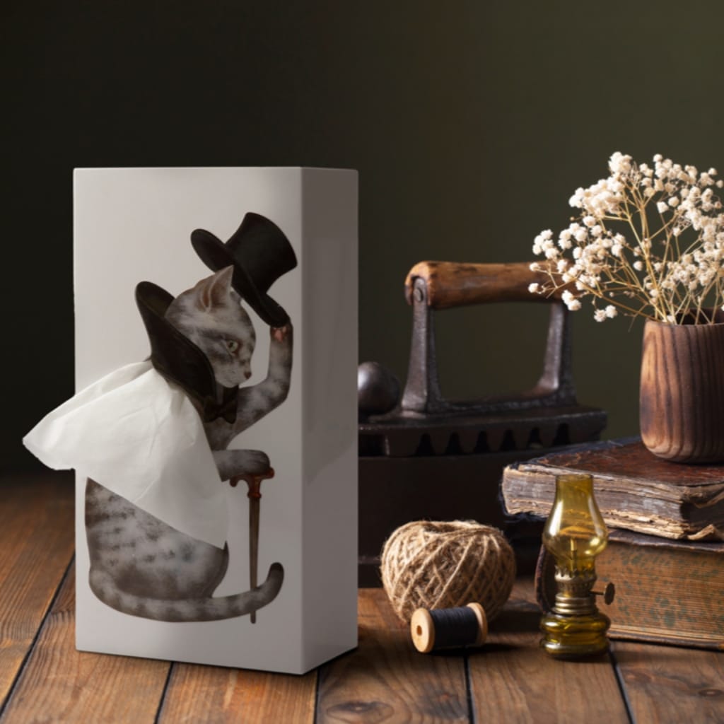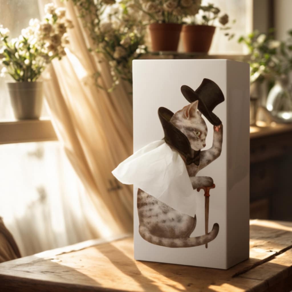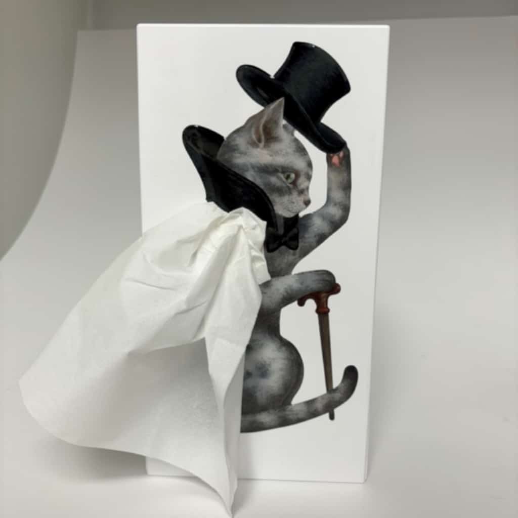 - Taschentuchhalter mit galanter Katze Aufdruck