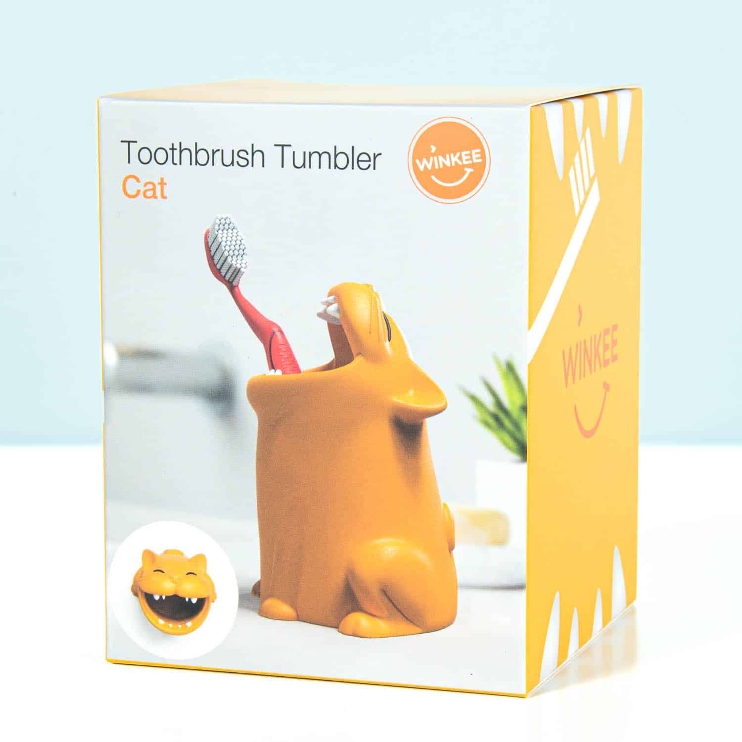 Meow! Der Katzen Zahnbürstenhalter von Winkee ist ein Zahnbürstenhalter in Form einer Katze, die ihr Maul weit offen hat. Stecke deine Zahnbürsten hinein und es sieht aus, als würde die Katze sie in ihrem Mund festhalten. Eine verspielte und originelle Art, deine Zahnbürsten im Badezimmer aufzubewahren. Perfekt für Katzenliebhaber, die ihr Badezimmer etwas fröhlicher gestalten wollen!