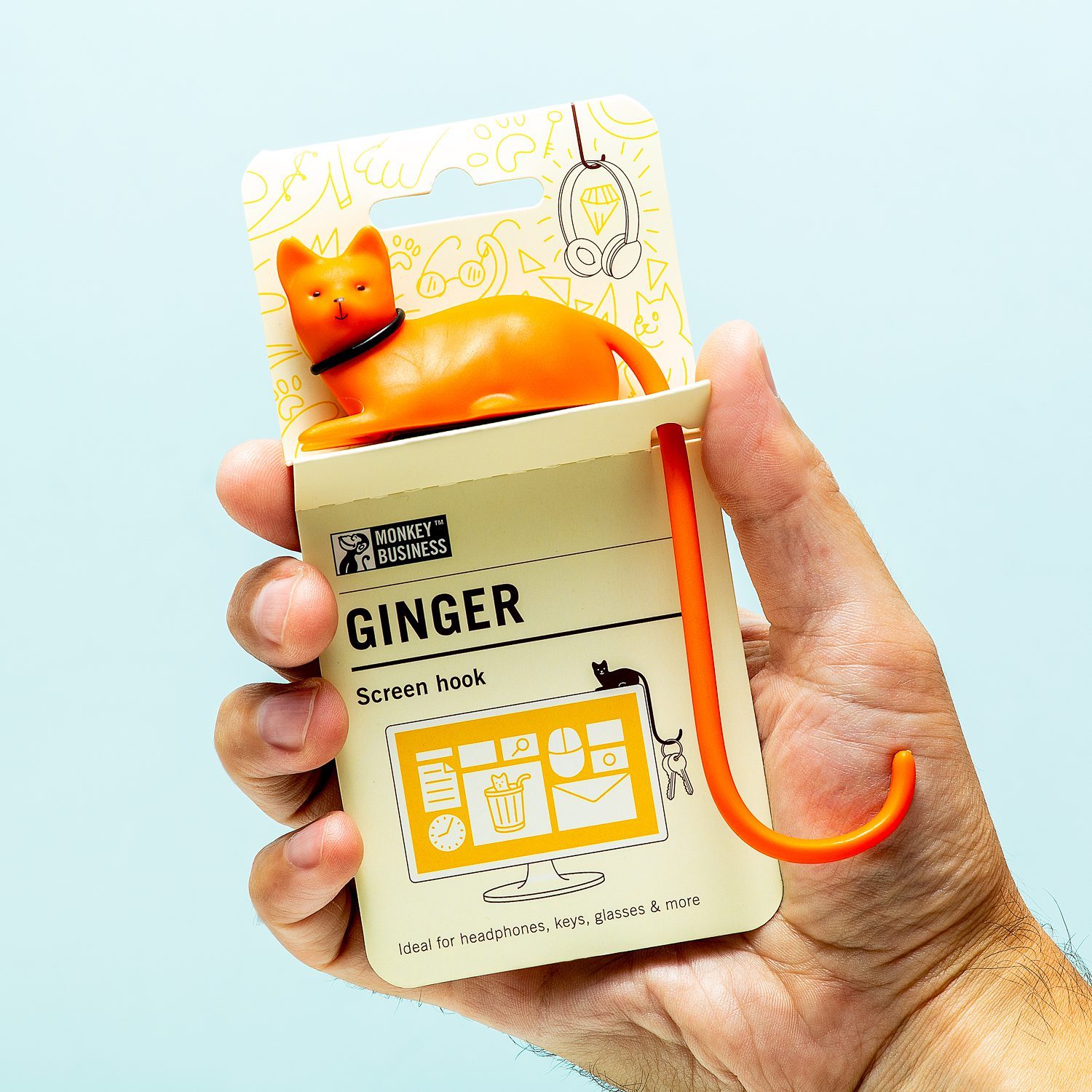 Schmuck, dein Ladegerät, Ohrhörer: Es gibt kaum etwas, was der Katzenschwanz Haken von Monkey Business nicht tragen kann. Diese lustige, faule Katze liegt oben auf deinem Monitor und hilft dir, deine Sachen zu organisieren. Es ist das ideale Hilfsmittel für Menschen, die einen aufgeräumten Schreibtisch schätzen.