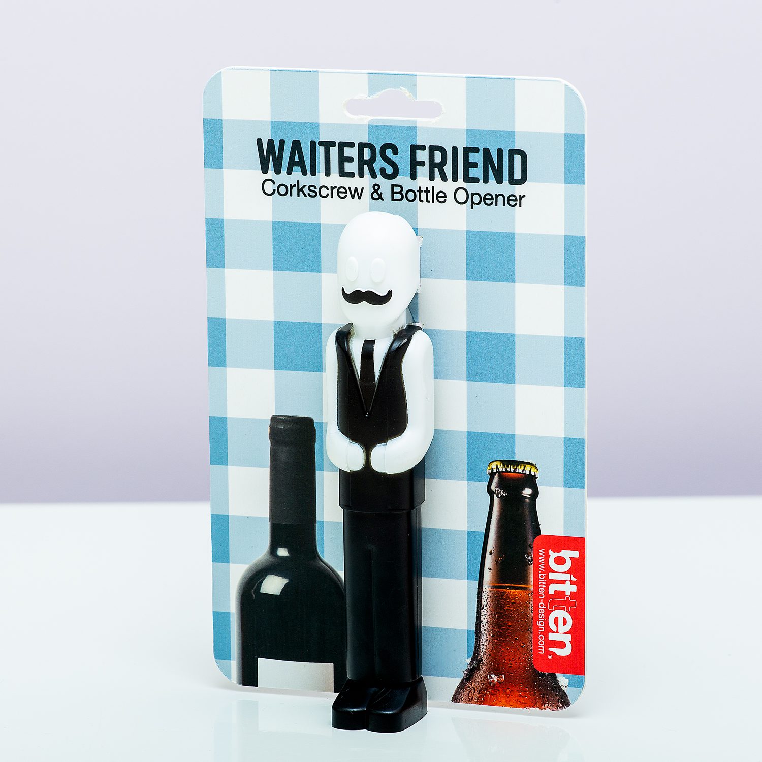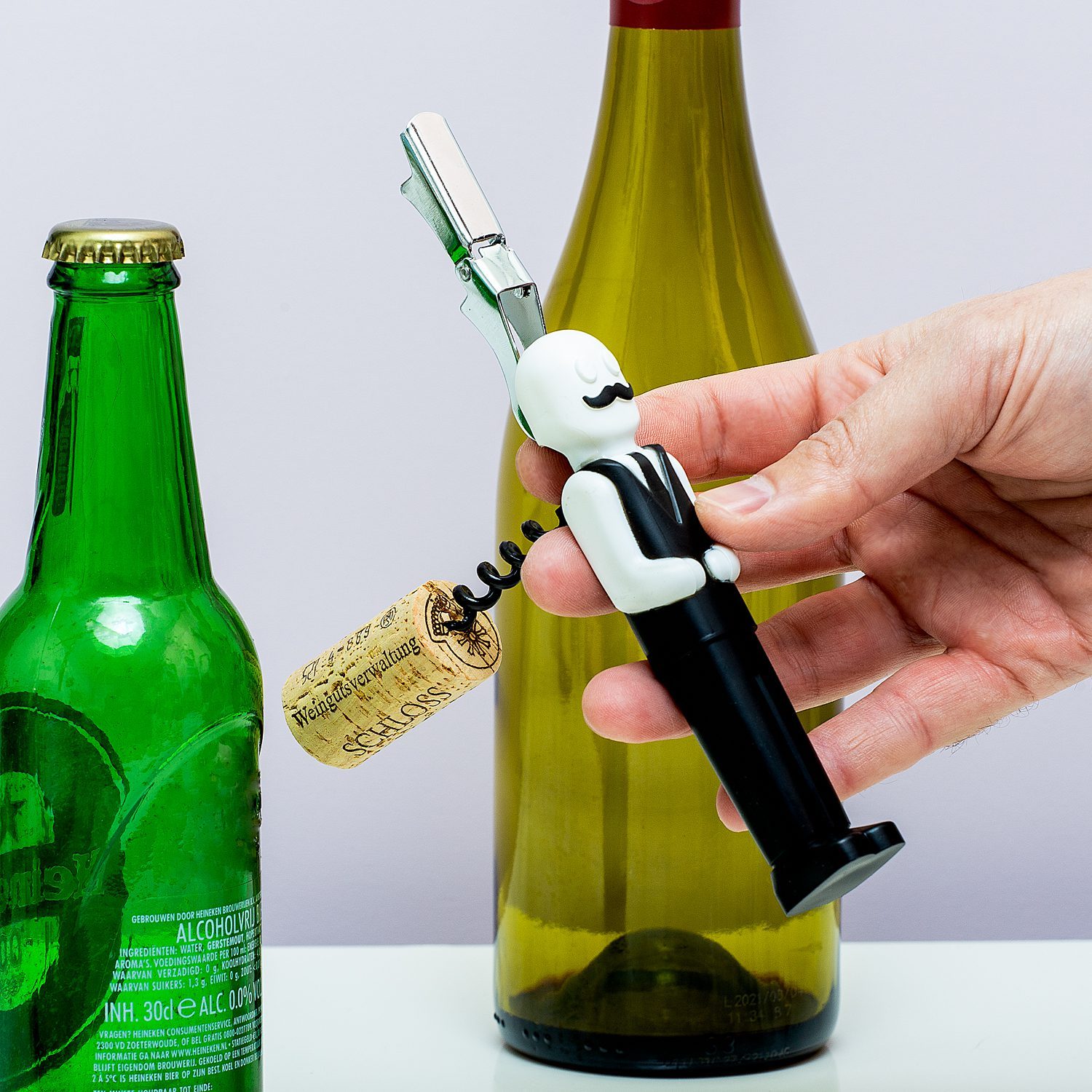 Wie Sie es von jemandem im Service erwarten wรผrden, ist Bitten’s Ober Korkenzieher immer da, um zu helfen. Egal, ob Sie eine Flasche Wein รถffnen mรถchten oder ob es Zeit fรผr ein Bier ist, er hilft Ihnen gerne weiter.Dieser originelle Korkenzieher sieht aus wie ein Kellner in einem schicken Restaurant. Sogar sein Schnurrbart sitzt perfekt! Ein originelles Geschenk fรผr jemanden, der gerne etwas trinkt.