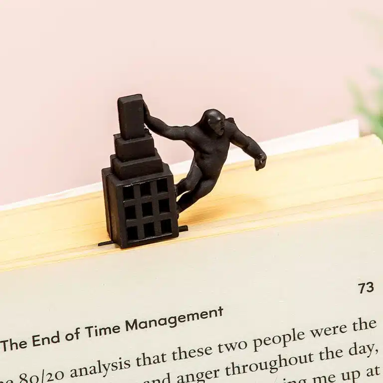 Schon 1933 machte das Publikum zum ersten Mal Bekanntschaft mit King Kong. Die Chancen stehen gut, dass du damals noch nicht geboren warst, aber seinen Namen kennst du sicherlich. Das King Kong Lesezeichen von Balvi ist inspiriert von diesem legendรคren Film aus den 30er Jahren, in dem Kong das Empire State Building in New York erklimmt. Der Wolkenkratzer dieses Lesezeichens besteht aus dรผnnem Nylon, aber Kong ist dicker und ragt daher รผber die Seiten hinaus.
