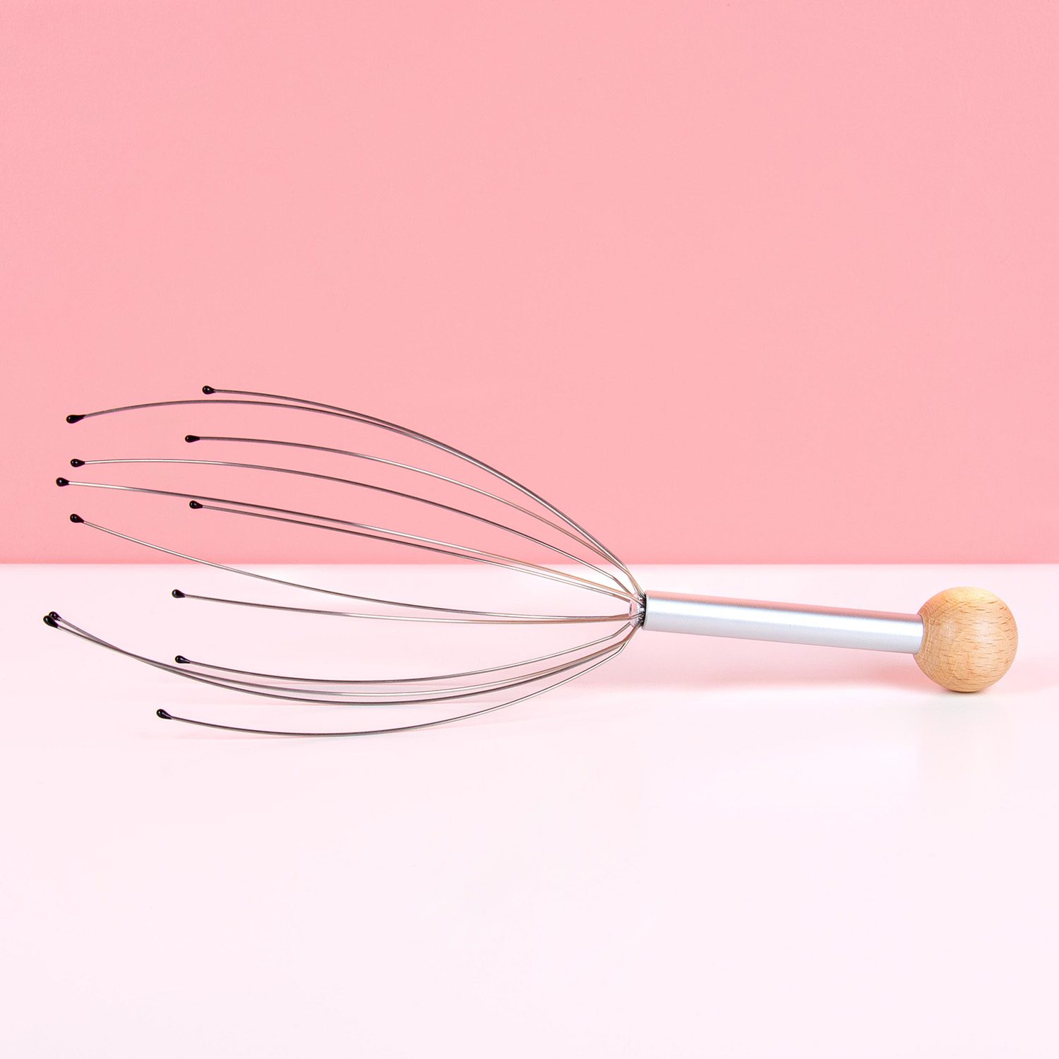 - Drei in eins: Stift, Kopfmassage-Spinne und Holzknopf fรผr schmerzende Muskeln