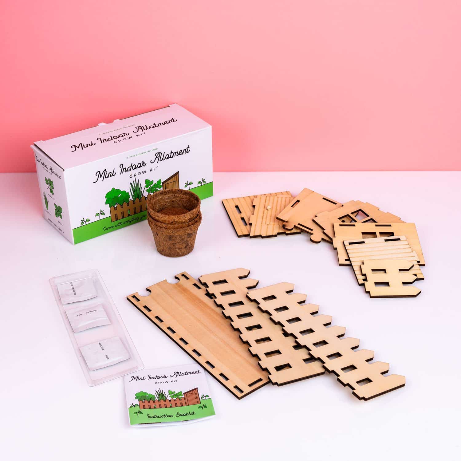 - Inklusive Gartenzaun und -schuppen, drei Töpfchen, Erde und Samen