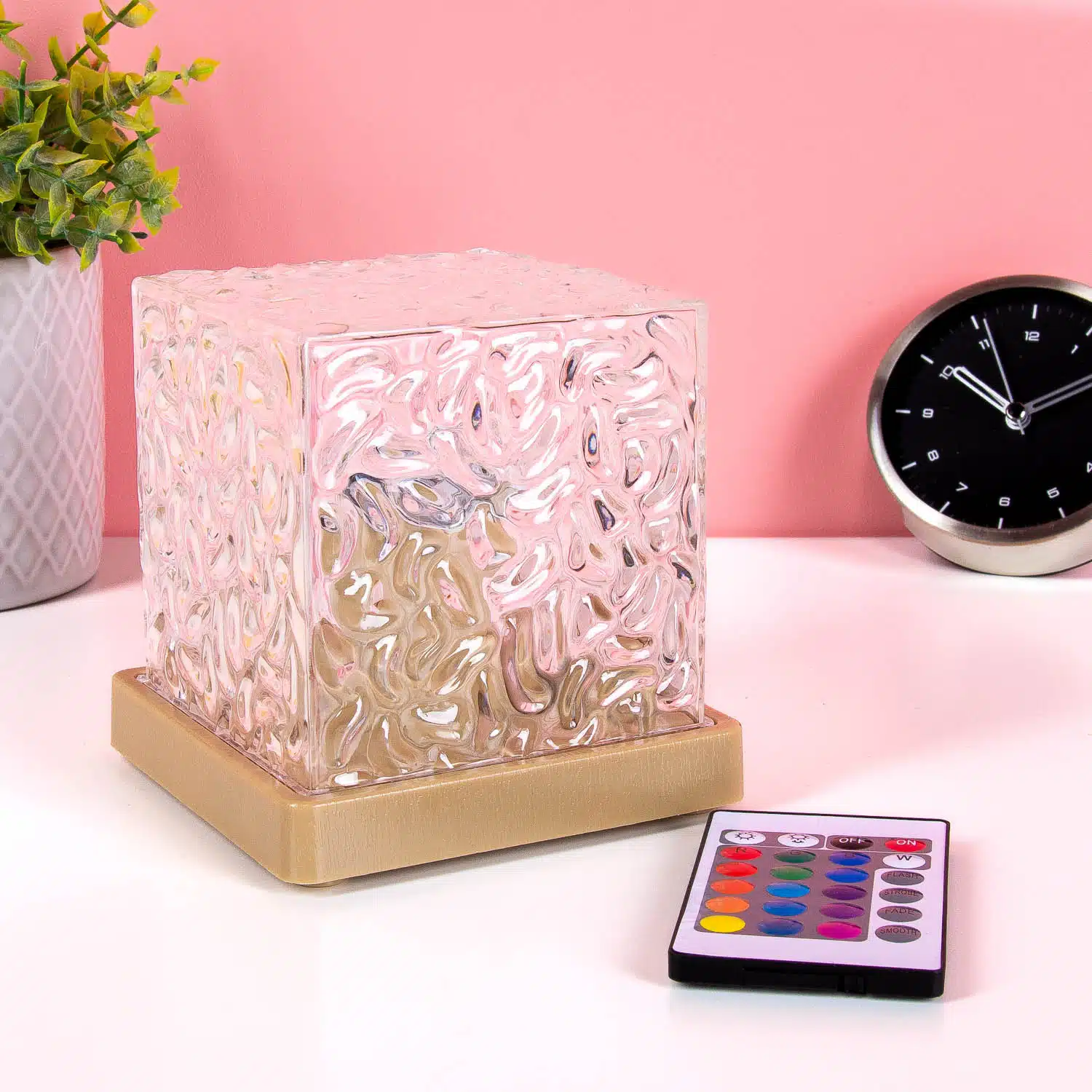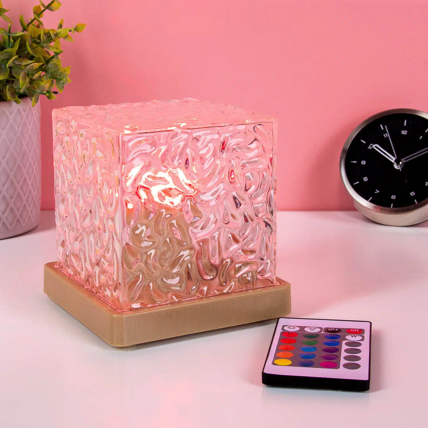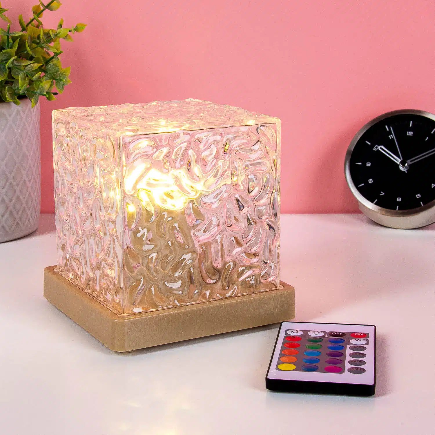 Party in deinem Zimmer! Diese Kubus LED-Lampe sieht aus wie ein riesiger Eiswรผrfel, der Licht in allen mรถglichen Farben gibt. Schalte mit der Fernbedienung zwischen Farben und kreiere die perfekte Stimmung fรผr dein Zimmer, Gaming Setup oder Party. Von Chill-Blau bis Party-Pink – du bestimmst die Vibes. Eine coole Lampe fรผr jeden, der Stimmungsbeleuchtung liebt!