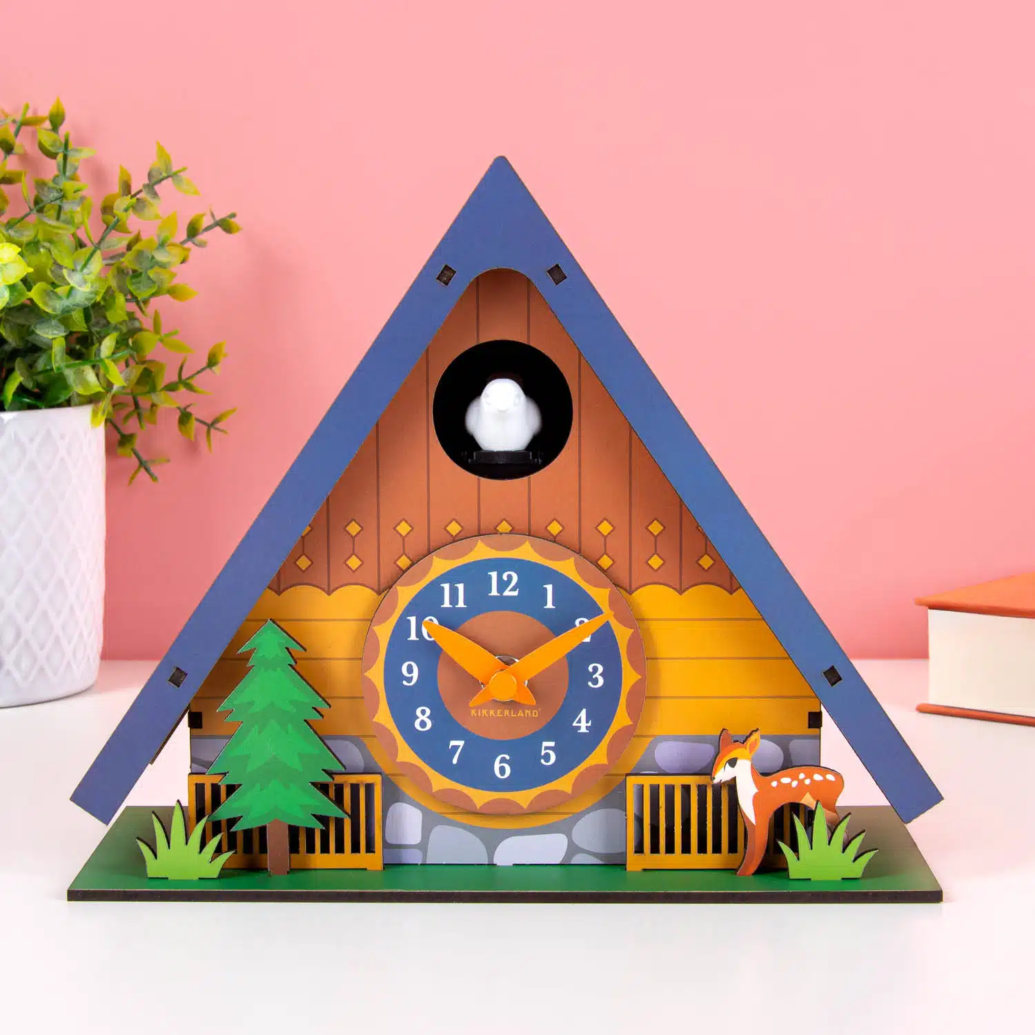 Wenn du die Natur und das Leben im Freien liebst, dann ist die Kuckucksuhr Blockhütte von Kikkerland wie für dich gemacht. Diese supersüße Uhr stellt ein A-förmiges Häuschen im Wald dar – mit Holzfassade, einem Reh, einem Tannenbaum und natürlich einem kleinen Vogel, der sich zu jeder vollen Stunde zeigt. Die perfekte Uhr für Naturfreunde und Kinder, die gerne im Wald unterwegs sind.